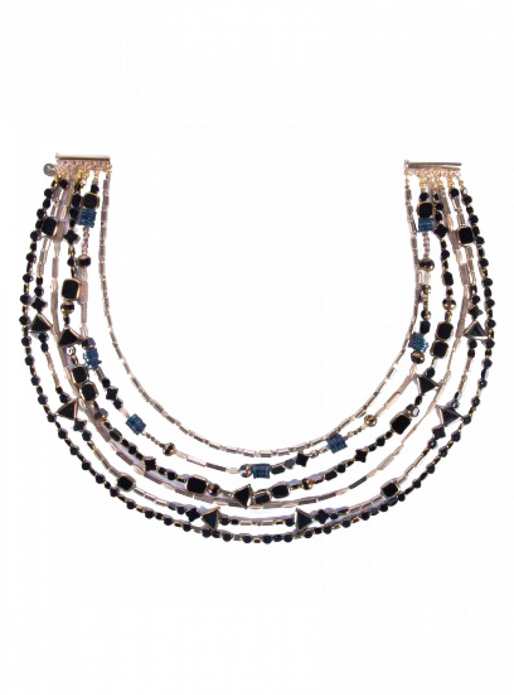 Collana morbida multifilo con pietre etniche