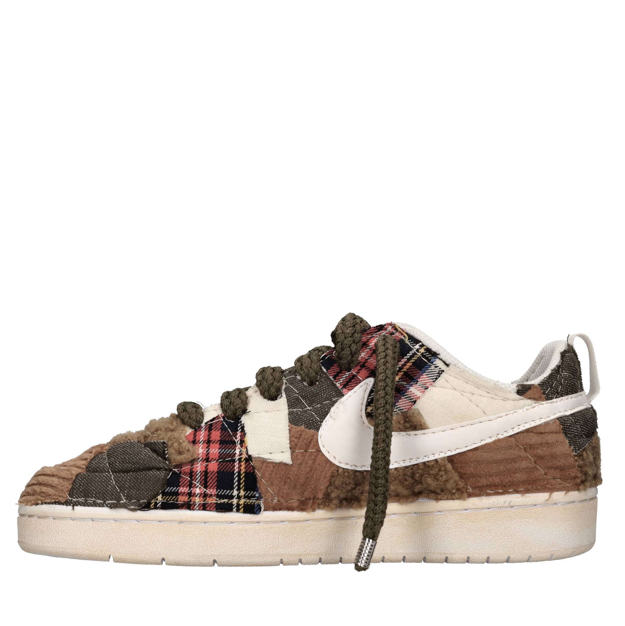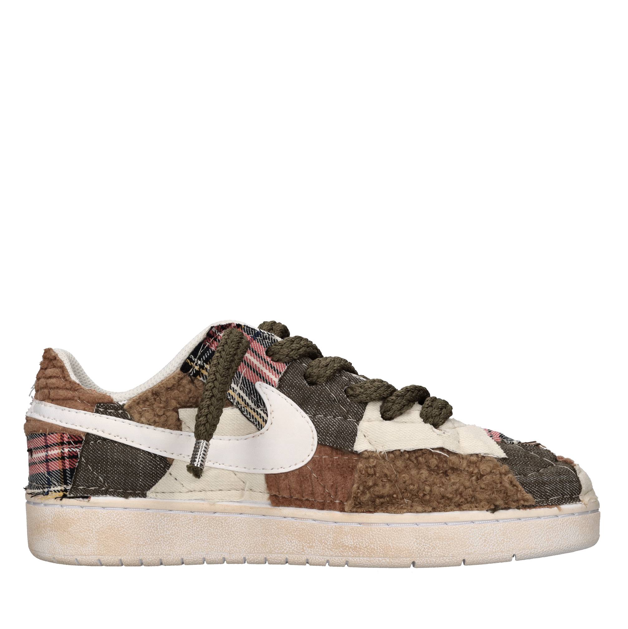 Sneakers in tessuto ed ecopelle. Tomaia interna in tessuto. Suola esterna in gomma. Lacci effetto intreccio.