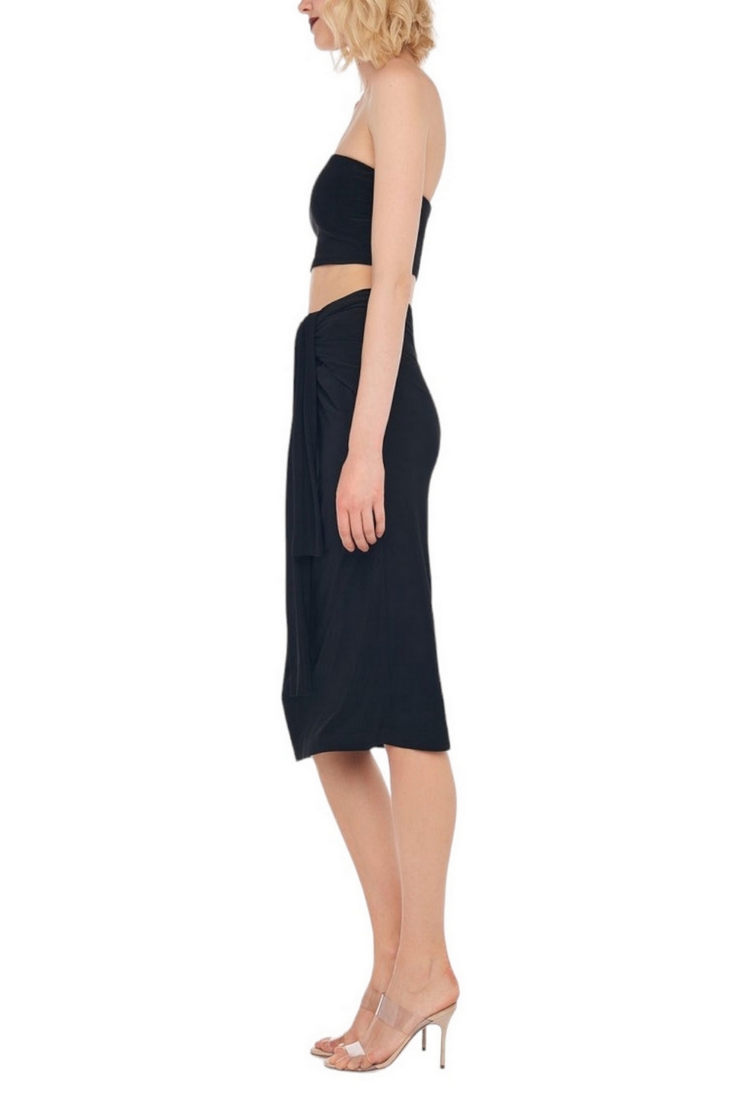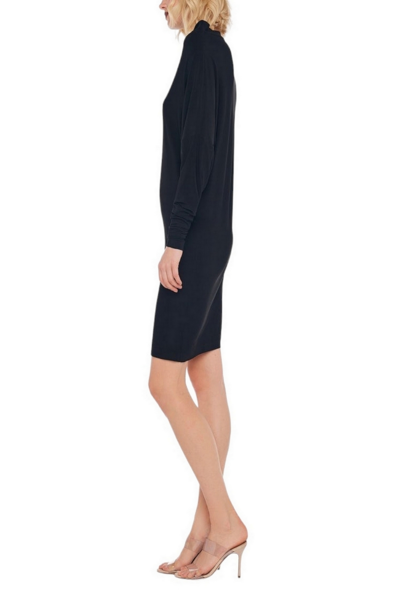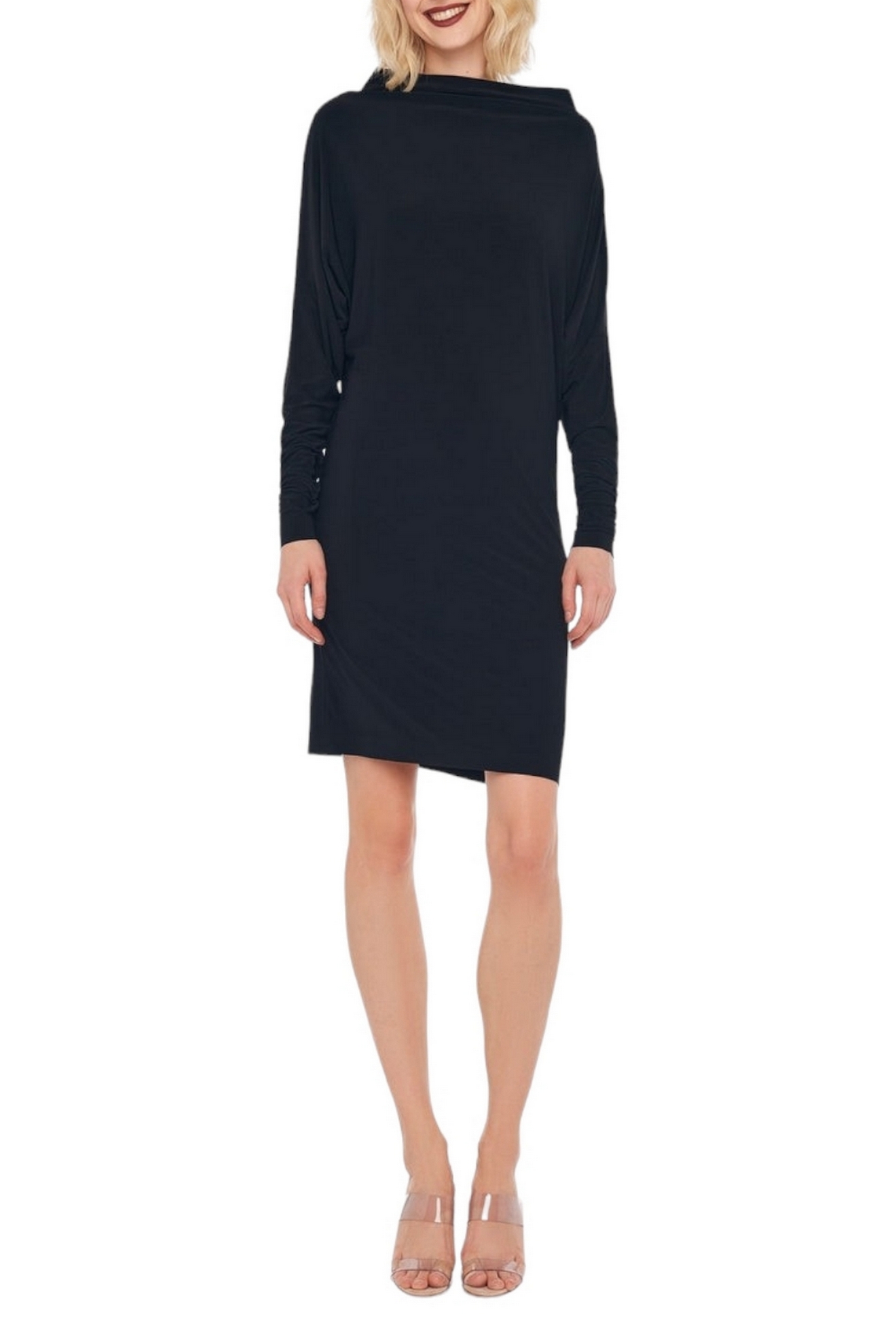 Abito all in one di Norma Kamali. Multitasker. Maniche Dolman. Lunghezza al ginocchio. Indossabile in tanti modi diversi. Poly Lycra elasticizzata. Composizione: 95% poliestere 5% spandex