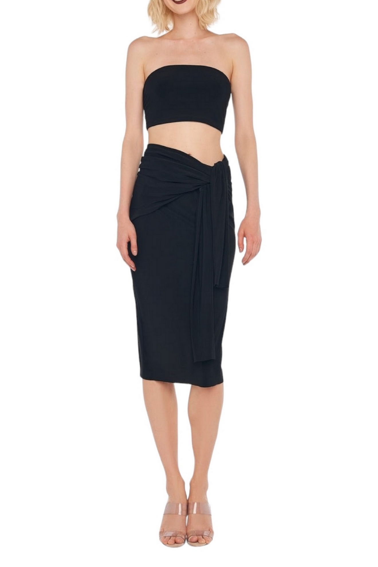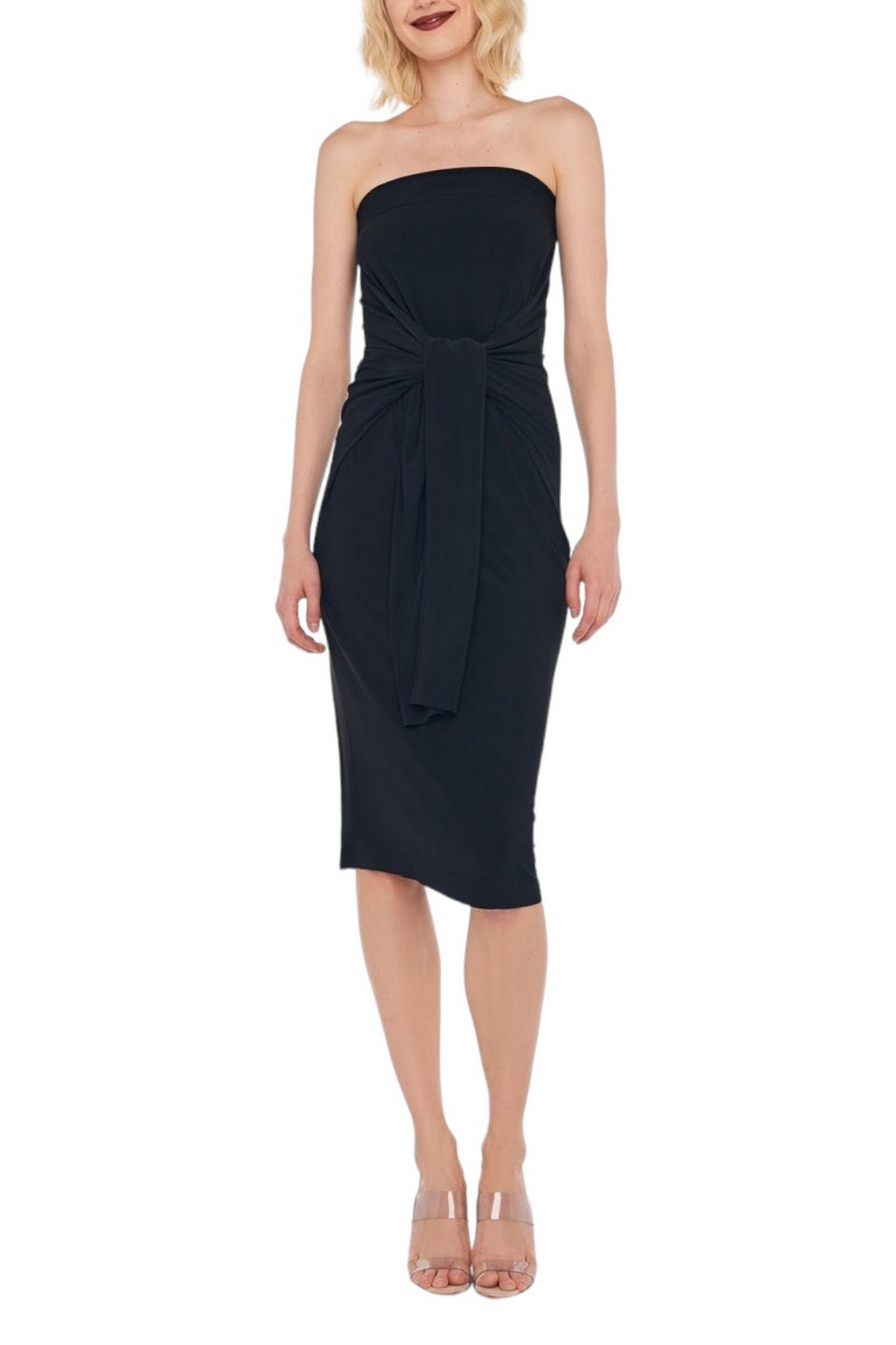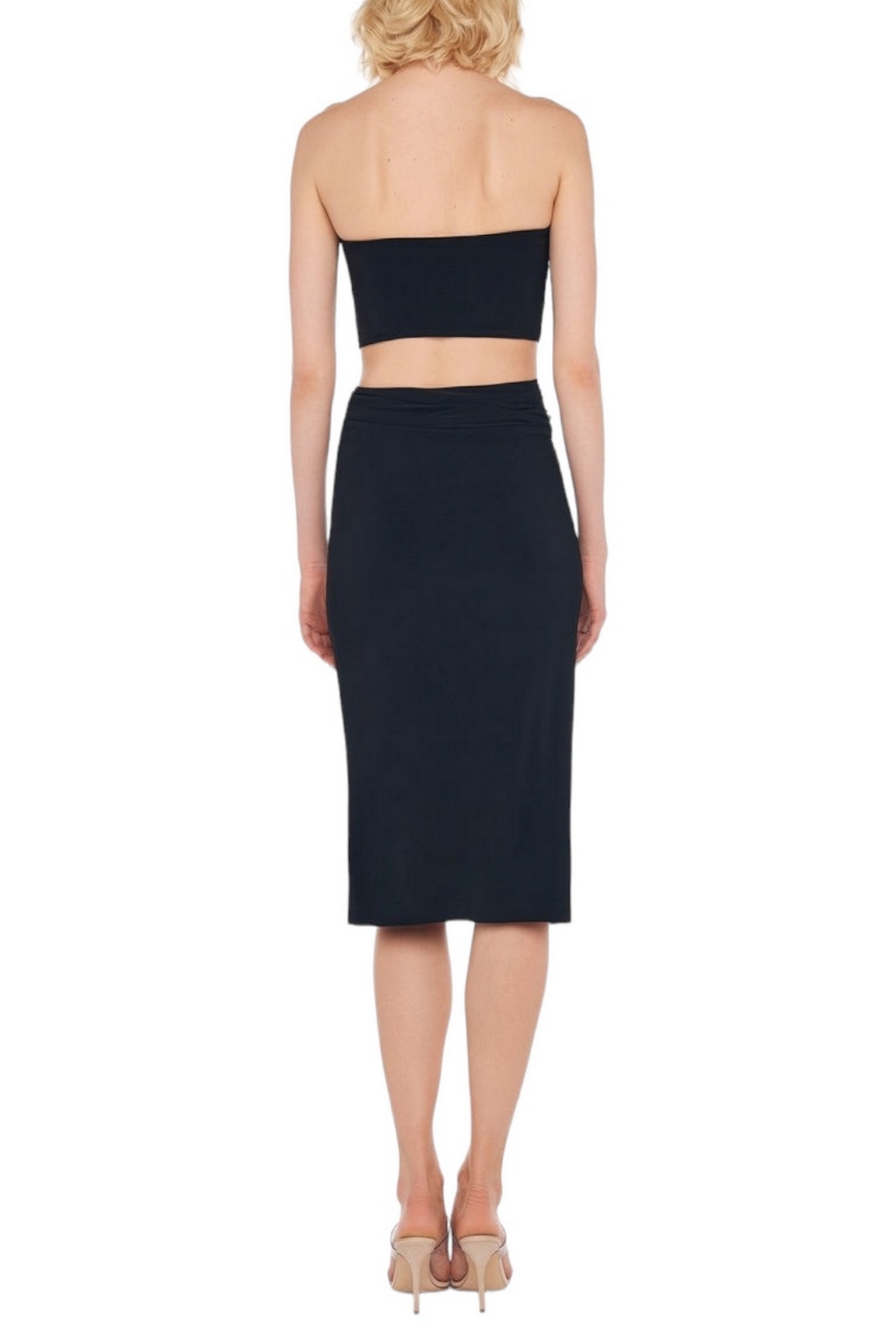 Abito all in one di Norma Kamali. Multitasker. Maniche Dolman. Lunghezza al ginocchio. Indossabile in tanti modi diversi. Poly Lycra elasticizzata. Composizione: 95% poliestere 5% spandex
