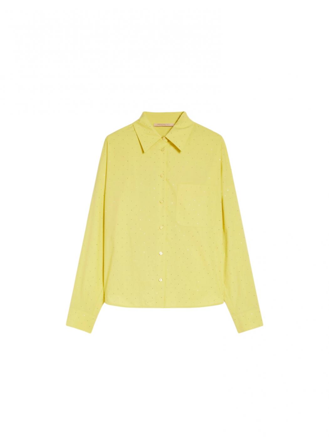 Punteggiata di micro strass, la camicia di taglio maschile fa parte della capsule collection Color Trip, coordinata all’omonima linea make-up di Pupa Milano.