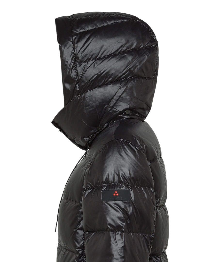 Puffer jacket ad ampie trapunte dal volume moderno, realizzato in nylon lucido dalla particolare morbidezza grazie a degli speciali trattamenti subiti. L’imbottitura diretta in piuma naturale certificata garantisce calore e leggerezza, mentre il doppio cappuccio – uno interno fisso e uno esterno removibile – offre massima protezione e adattabilità. Il collo alto con bottoni a pressione, la full zip centrale a doppio cursore a vista, in contrasto colore nero, e le ampie tasche laterali completano un capo pratico e distintivo, perfetto per uno stile urbano con attitudine outdoor. l tessuto è trattato con finitura idrorepellente. Lunghezza: corto Doppio cappuccio: interno fisso + esterno removibile In nylon lucido Collo alto Imbottitura in piuma naturale certificata Idrorepellente Vestibilità: Regular Composizione: 100% Polyamide Fodera: 100% Polyamide Imbottitura: 80% Piumino 20% Piuma - Fill Power 650 Pelliccia: Senza pelliccia
