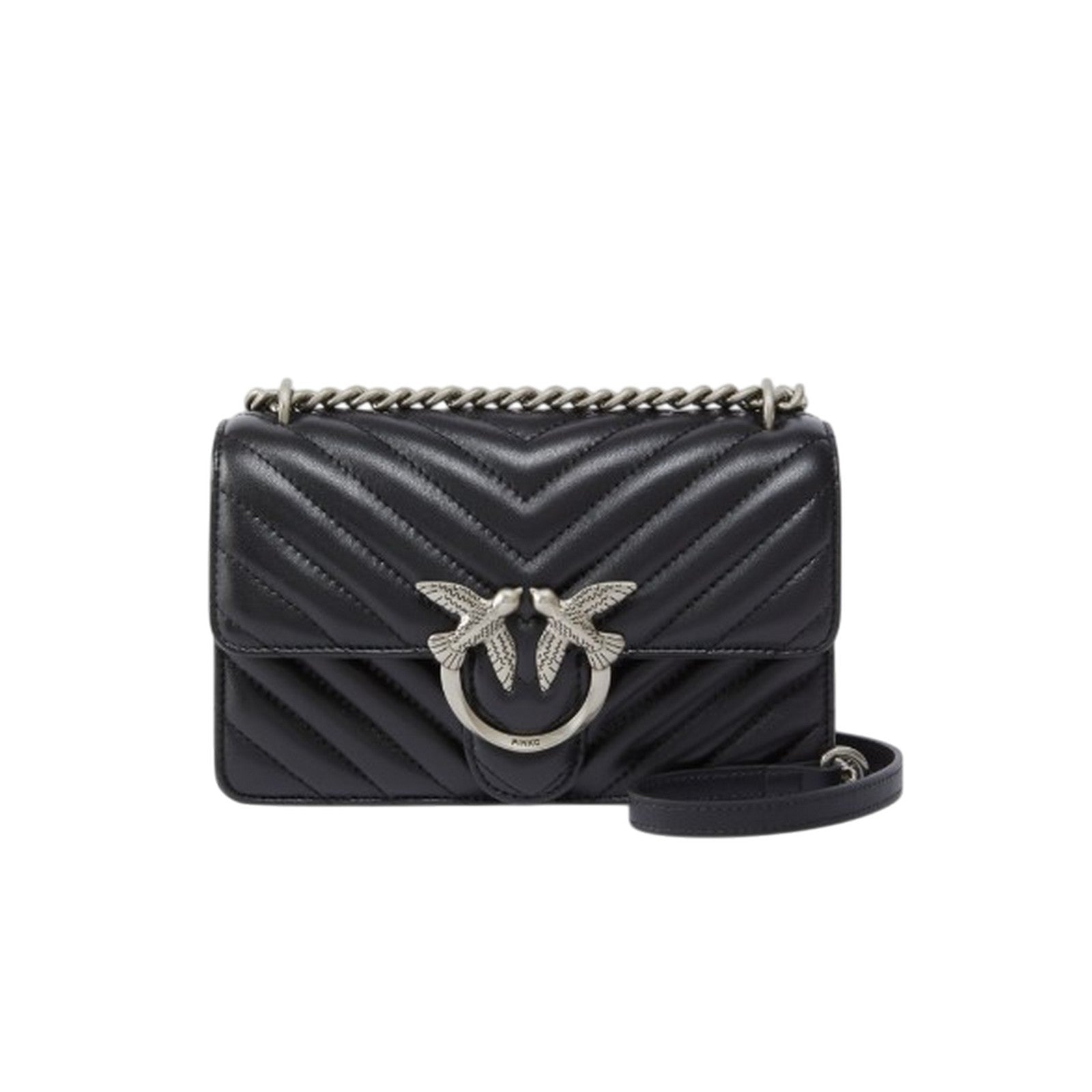 borse a spalla donna pinko - love one mini dc sheep nappa - nero