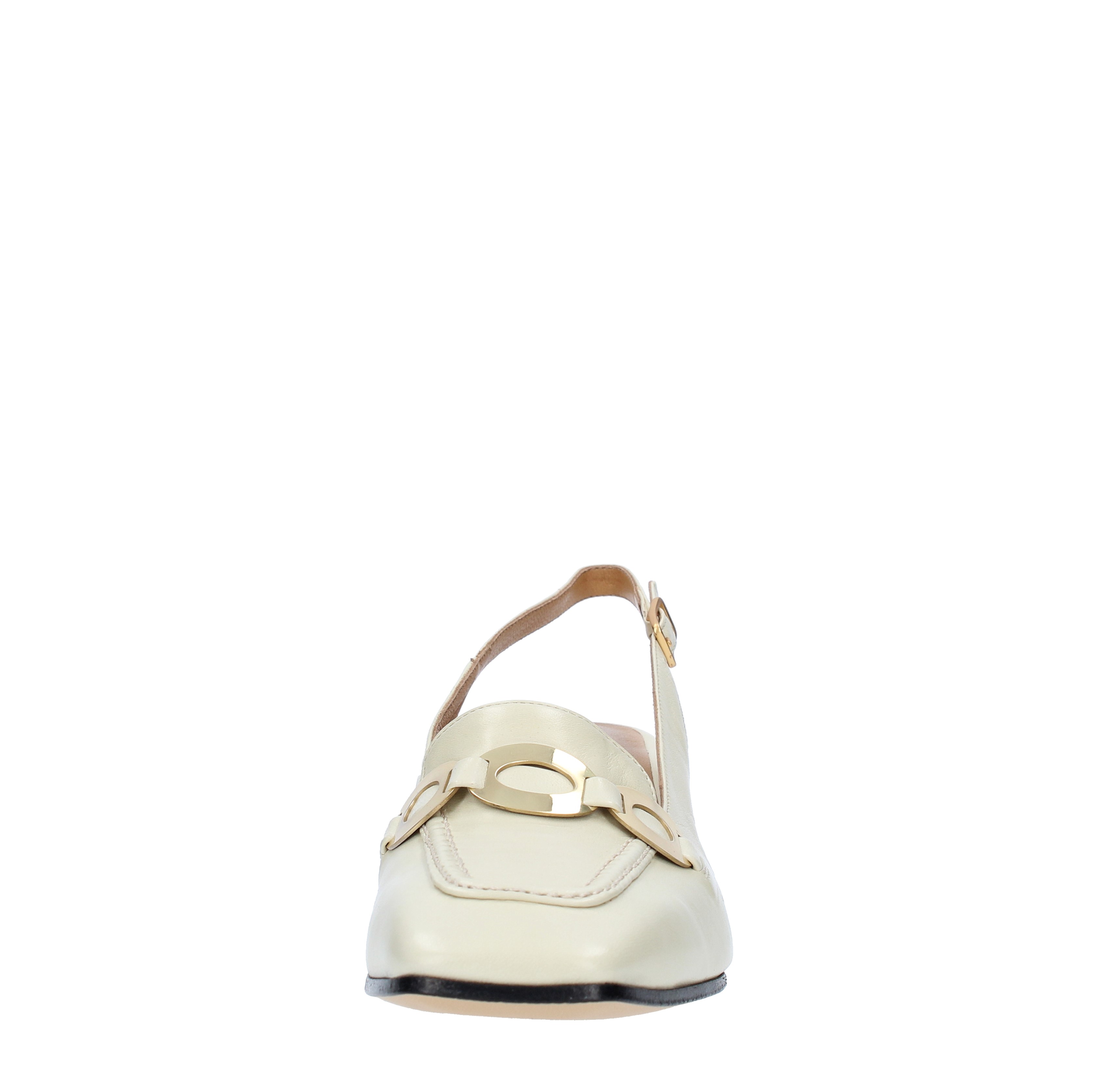 Décolleté slingback in pelle. Suola in cuoio e gomma. Tomaia interna in pelle.