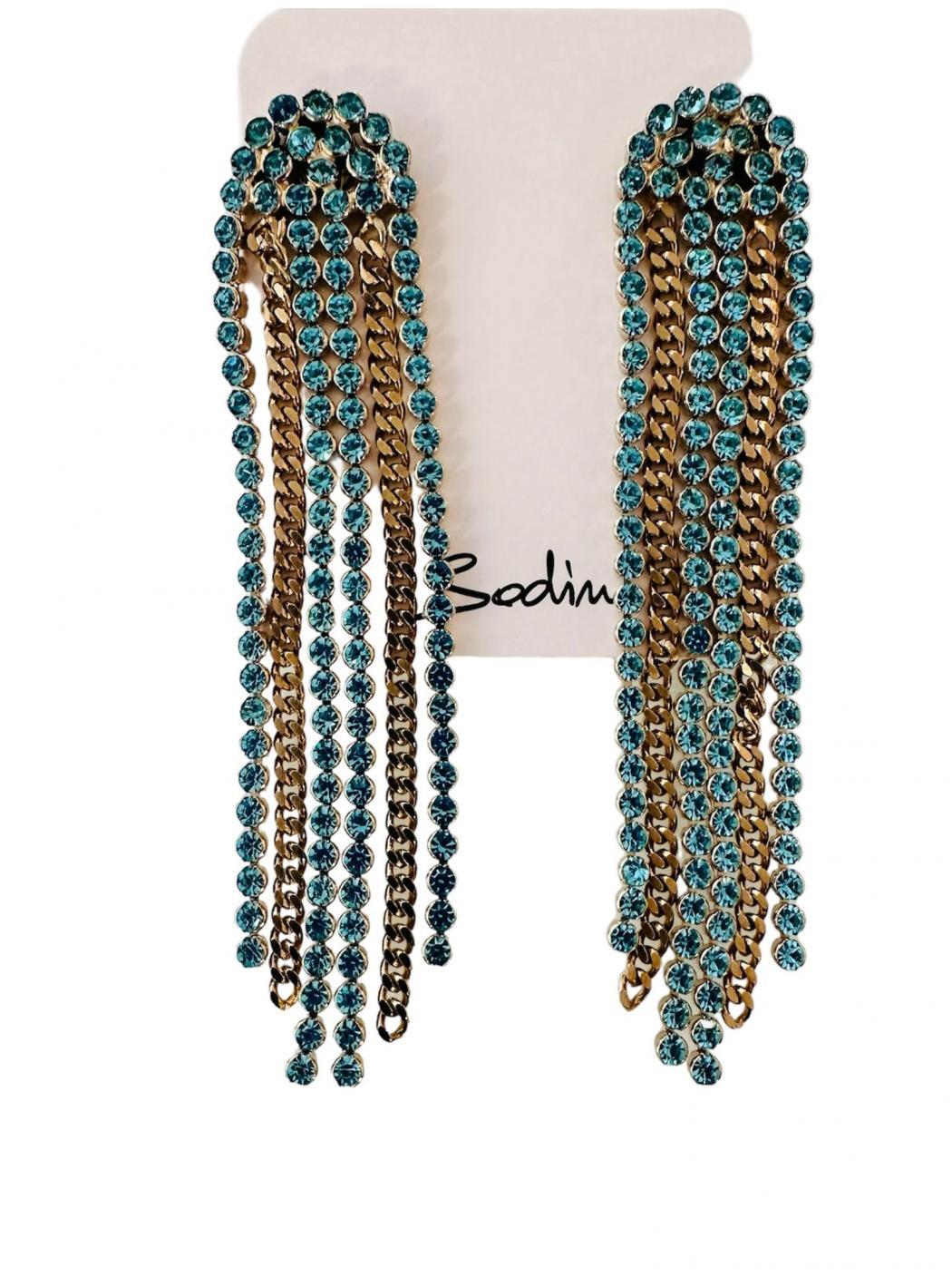 stupendo orecchino chandelier dorato e celeste. Elegantissimo bijoux made SODINI BIJOUX 100% nickel free