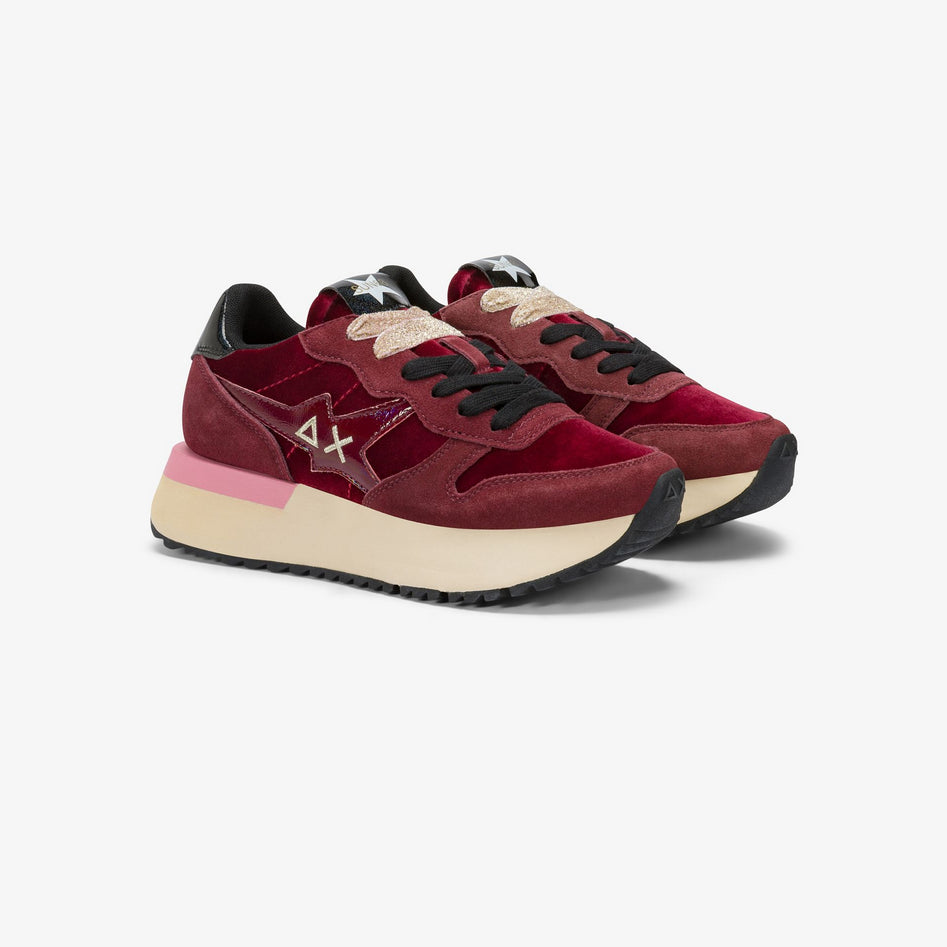 Sneaker Big Stargirl Velvet da donna in velluto e suede, stile running pensato per la stagione più fredda. La combinazione di materiali resistenti dall'effetto caldo e ricco al tatto assicura comfort e stile, mentre la suola in gomma leggera accompagna ogni passo valorizzando la silhouette. Etichetta logata con stella sulla linguetta, patch laminata con logo ricamato sul lato, chiusura con lacci con dettagli lurex, fodera in micro mesh e suola in phylon con battistrada in gomma. Composizione: 49% pelle, 41% residui tessili o composizione non determinata, 10% poliuretanica.Codice prodotto Z4522335 A25