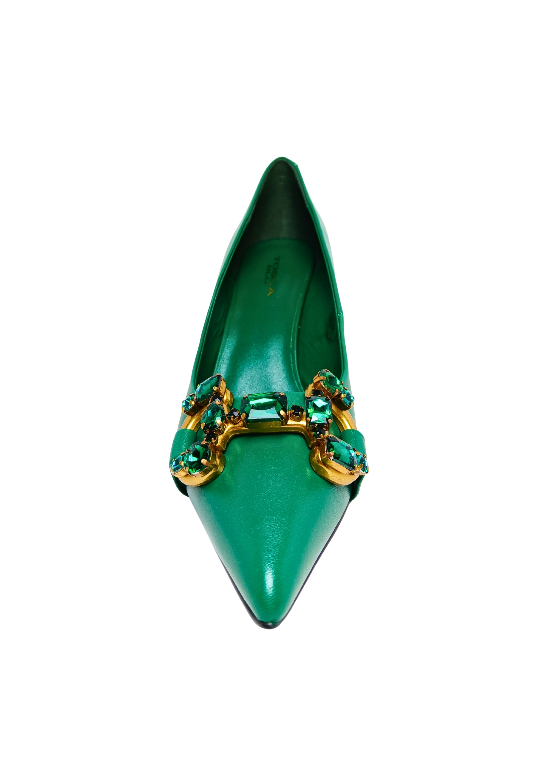 Scarpe Donna Tosca Blu Decolleté a punta con tacco e abbricazioni in oro.