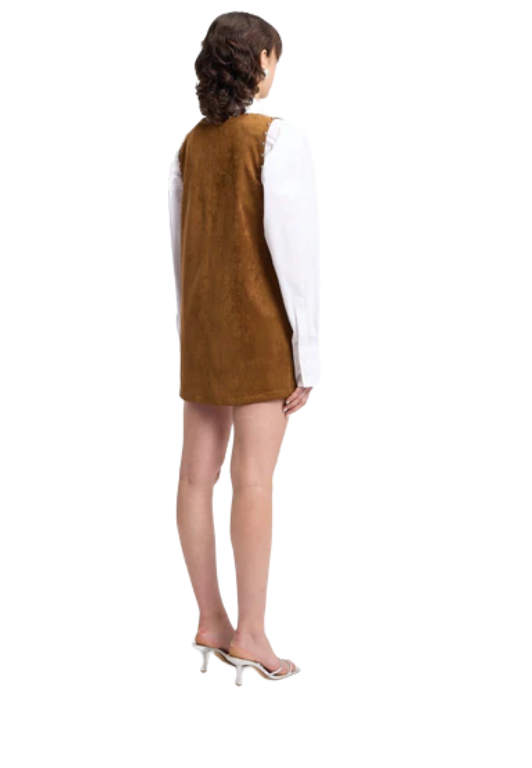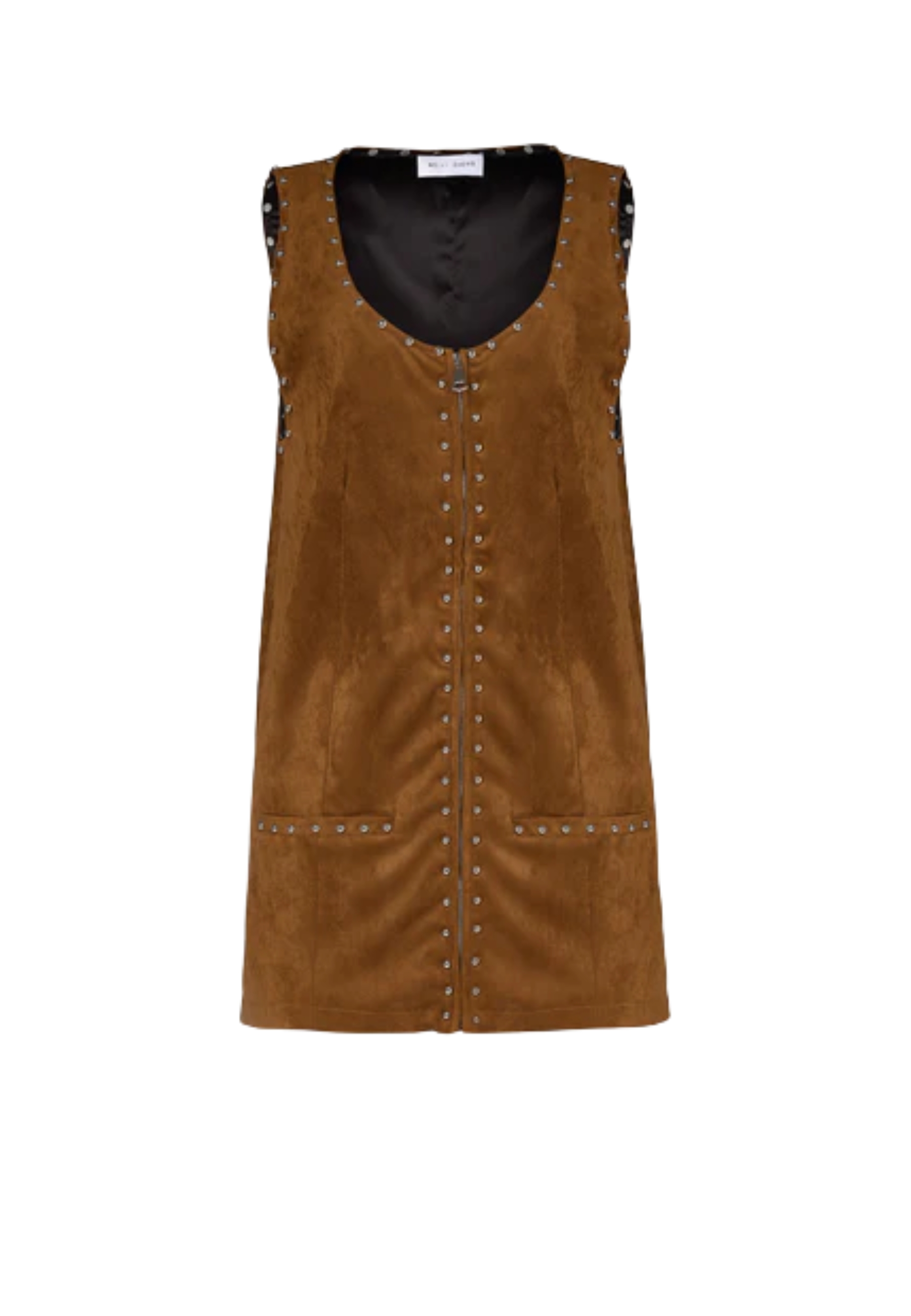 ABITO CORTO A TRAPEZIO IN CAMOSCIO CON DETTAGLIO CON BORCHIE E CON TASCHE SUL DAVANTI