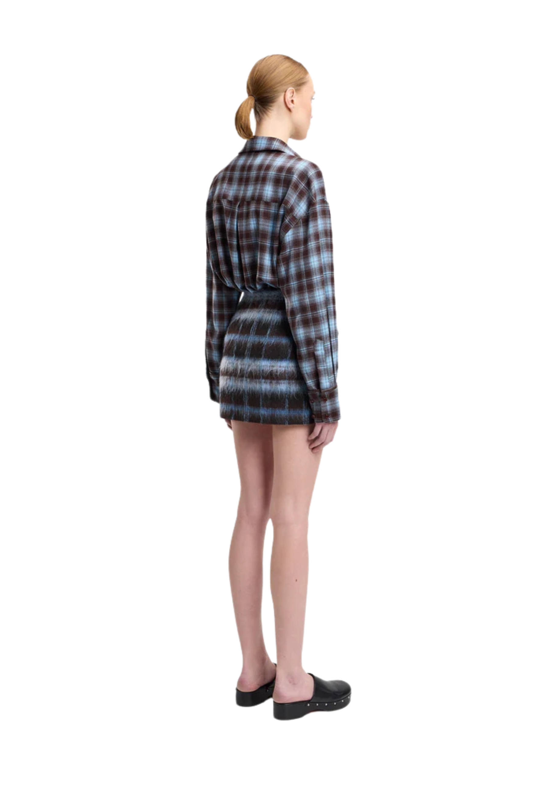 Camicia in cotone a quadri celeste e marrone.
