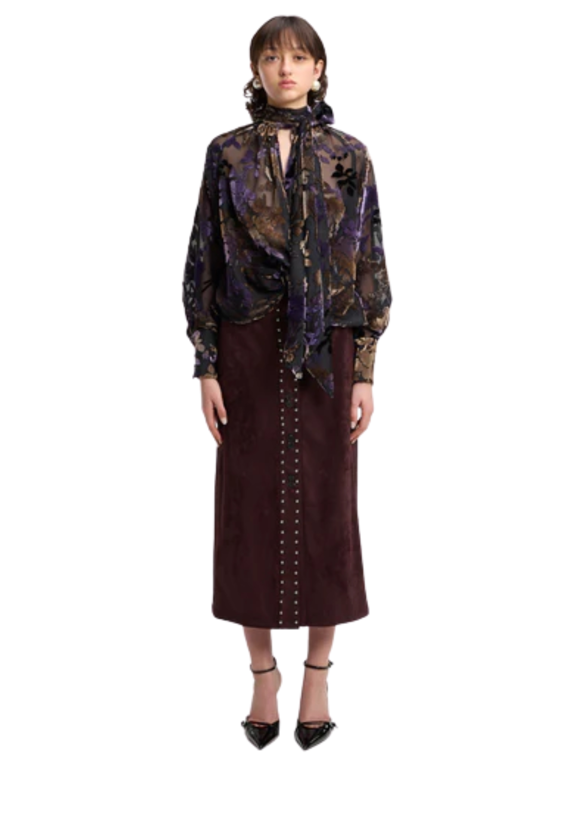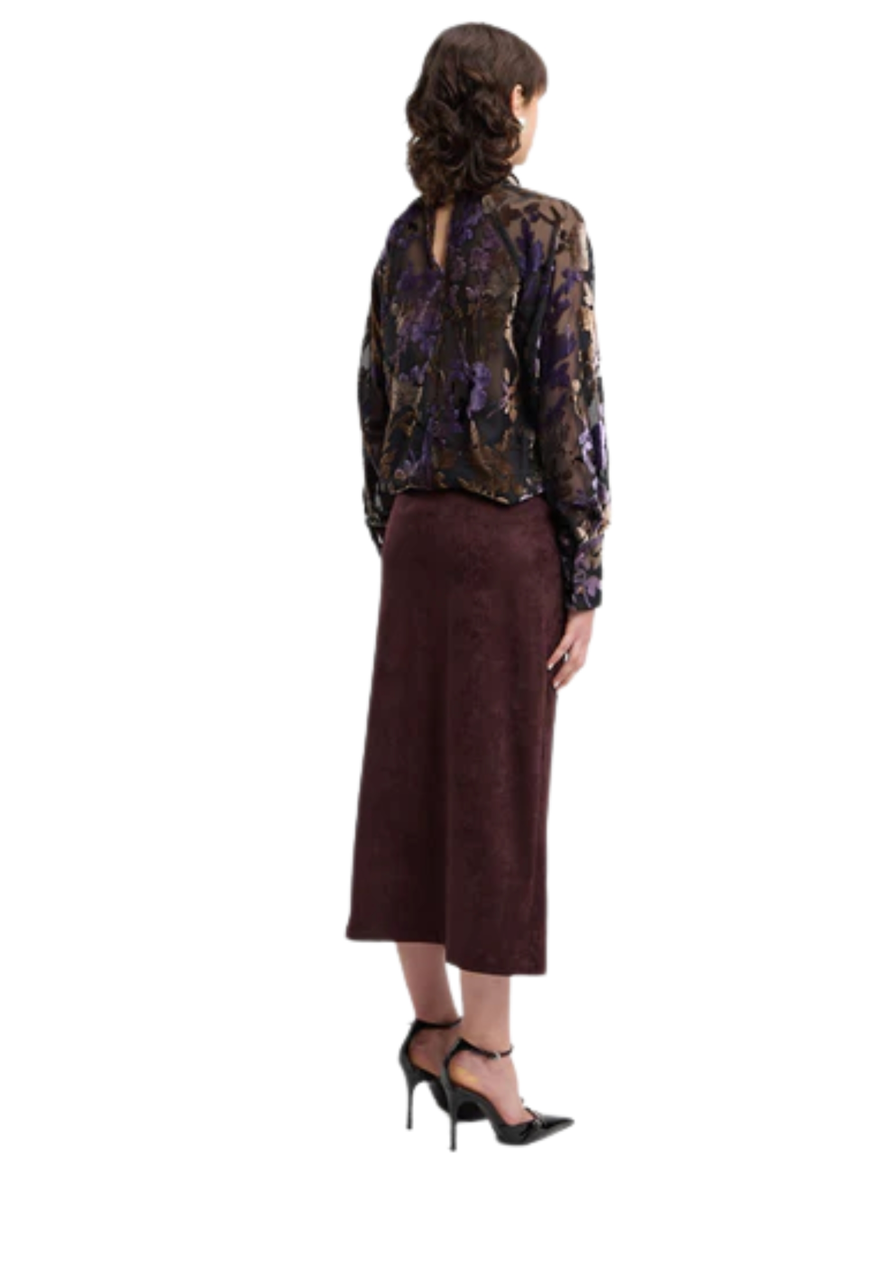 GONNA LONGUETTE IN CAMOSCIO BORDEAUX CON DETTAGLIO BORCHIE SUL DAVANTI