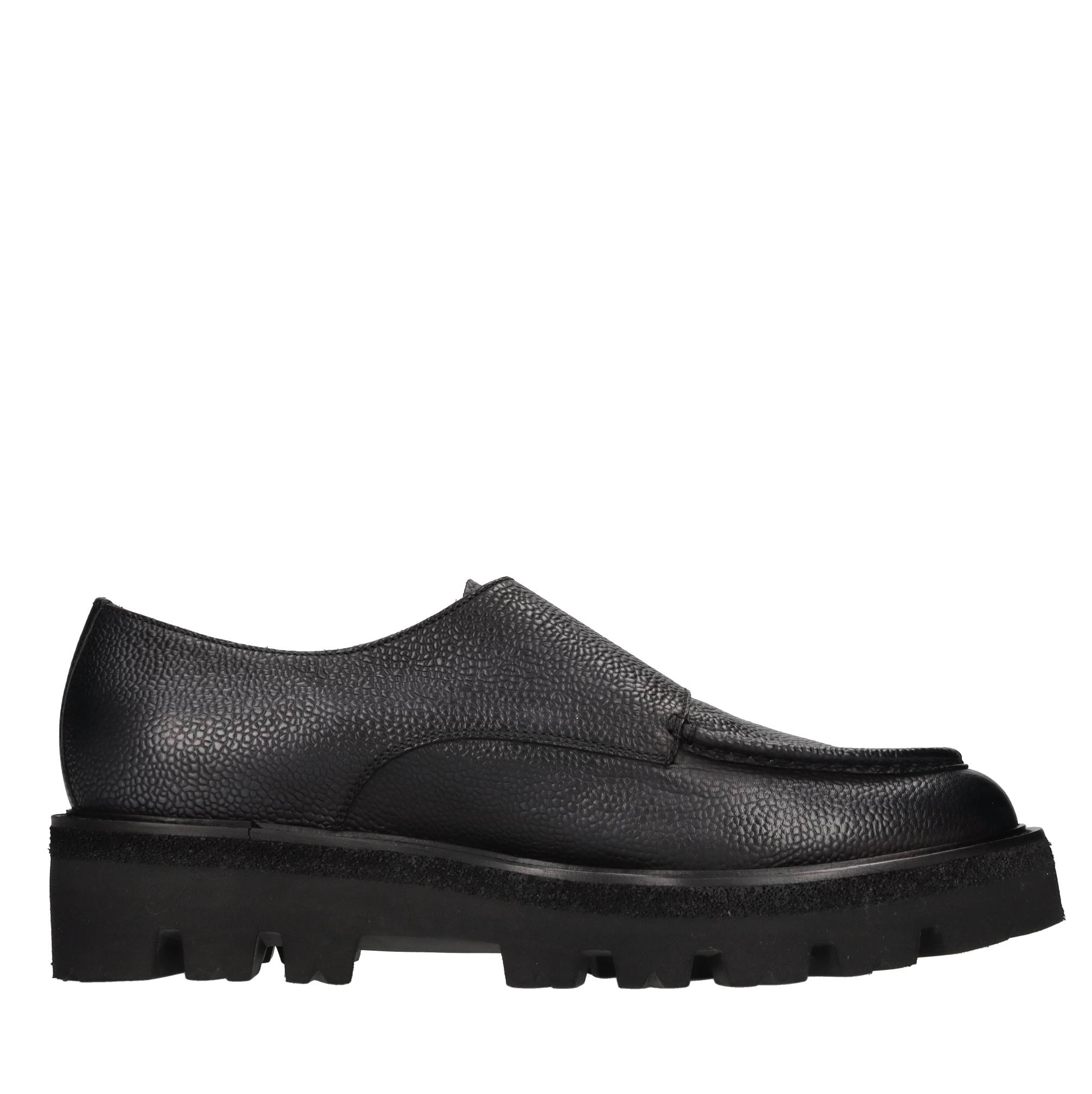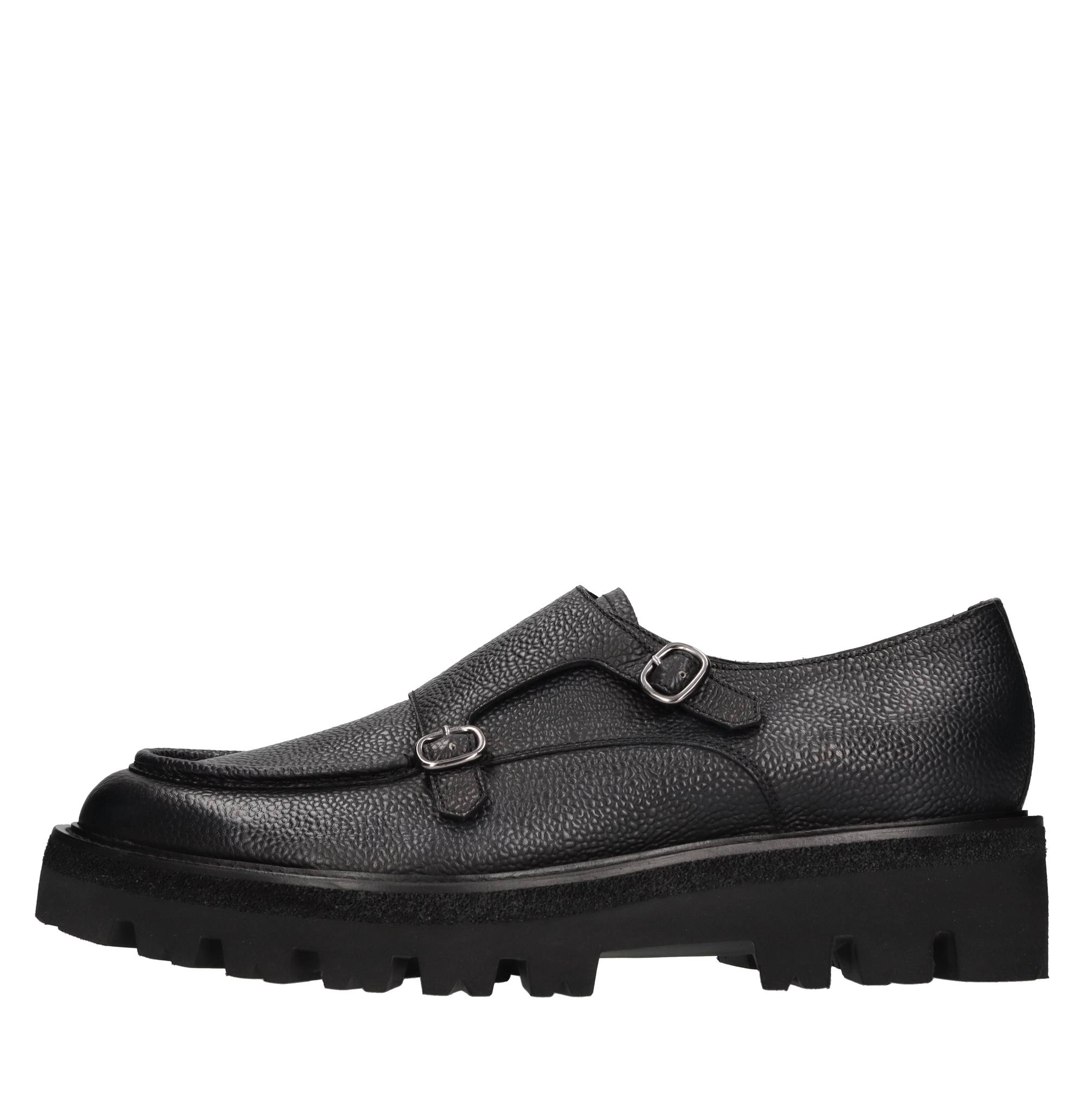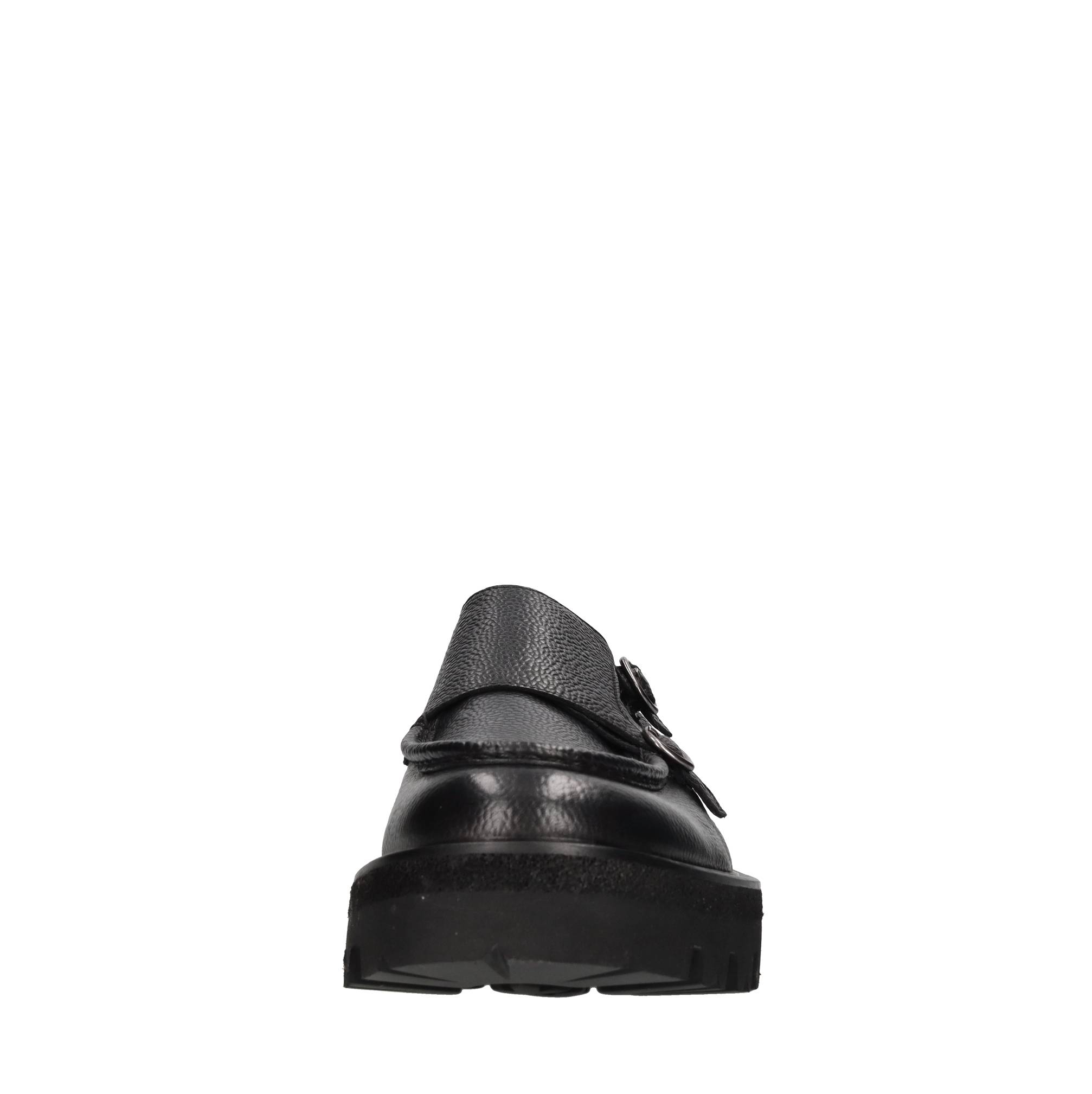 Mocassini in pelle. Martellata. Doppia fibbia. Tomaia interna in pelle. Suola esterna in gomma. Lavorazione artigianale.