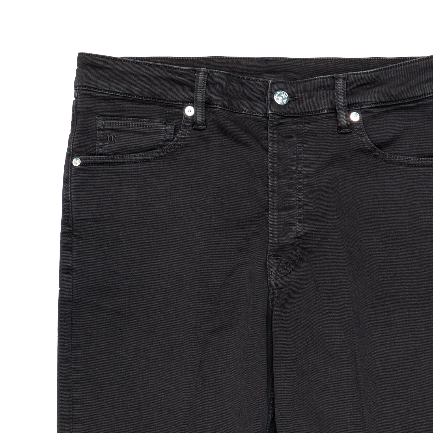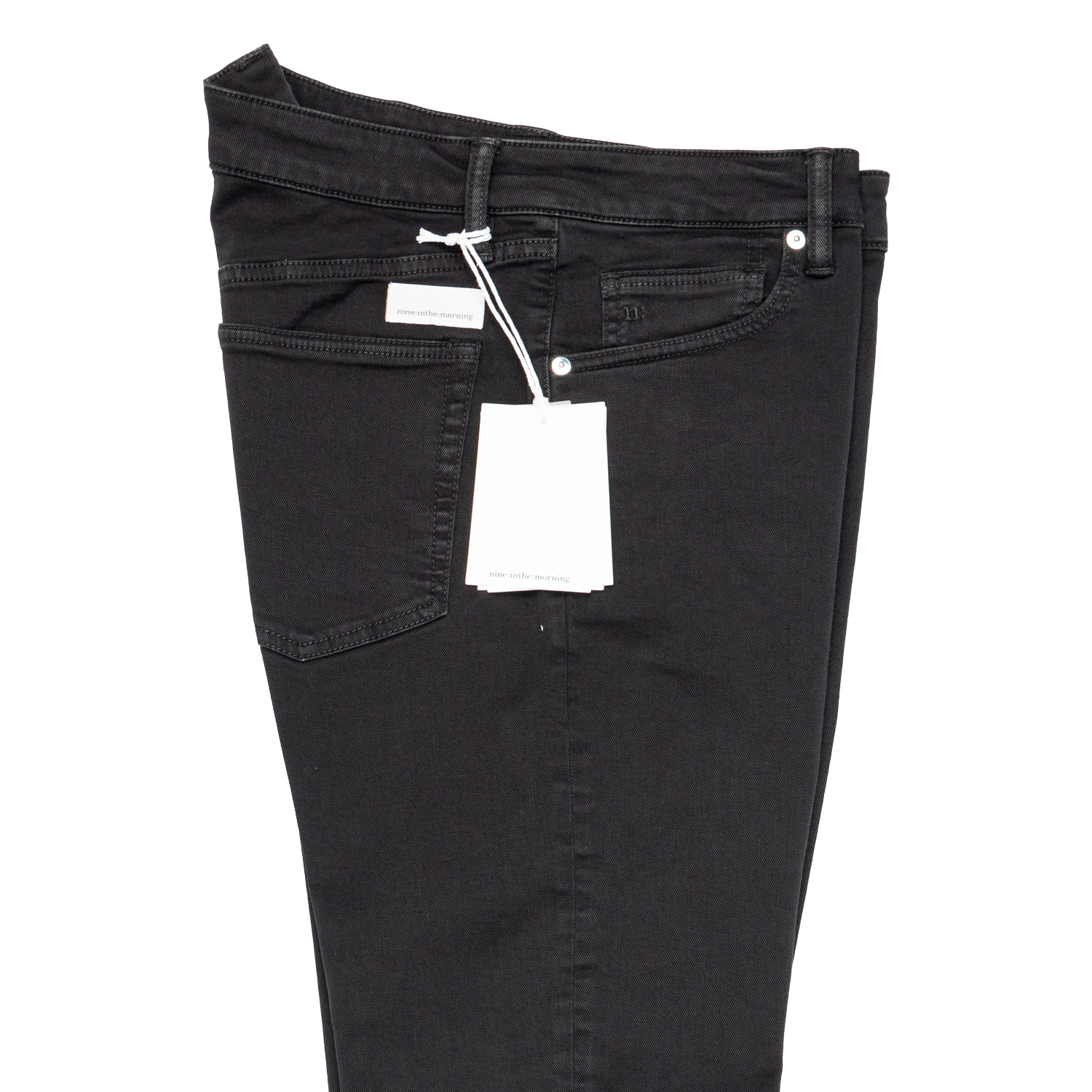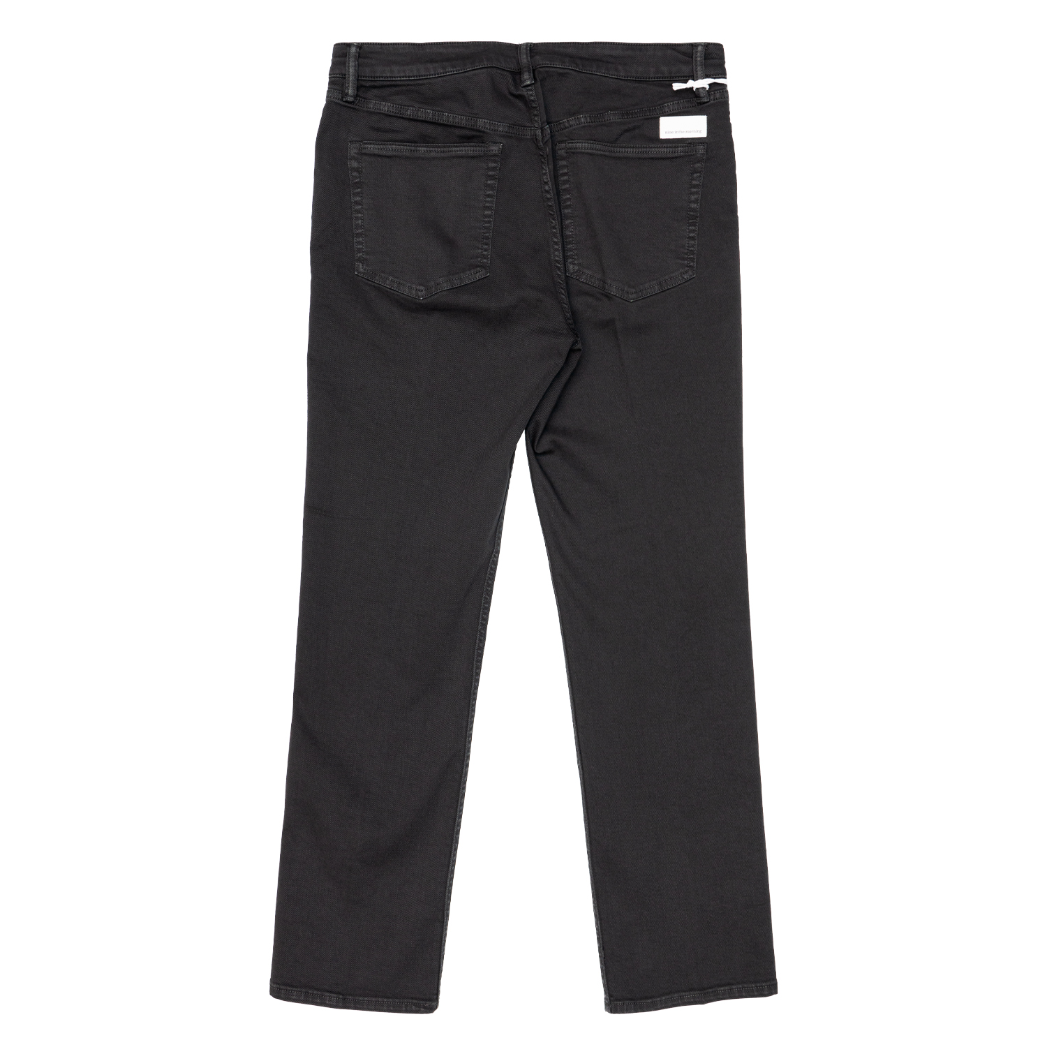Jeans Cinque tasche in denim autentico con gamba dritta e vita media; lavaggio grigio scuro; chiusura con bottoni in galvanica silver; etichetta con logo applicata sul retro.