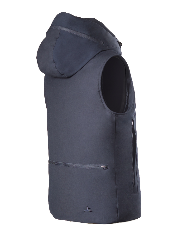 VESTECHWO 18 BLU Smanicato con capp. staccabile lana tecnica