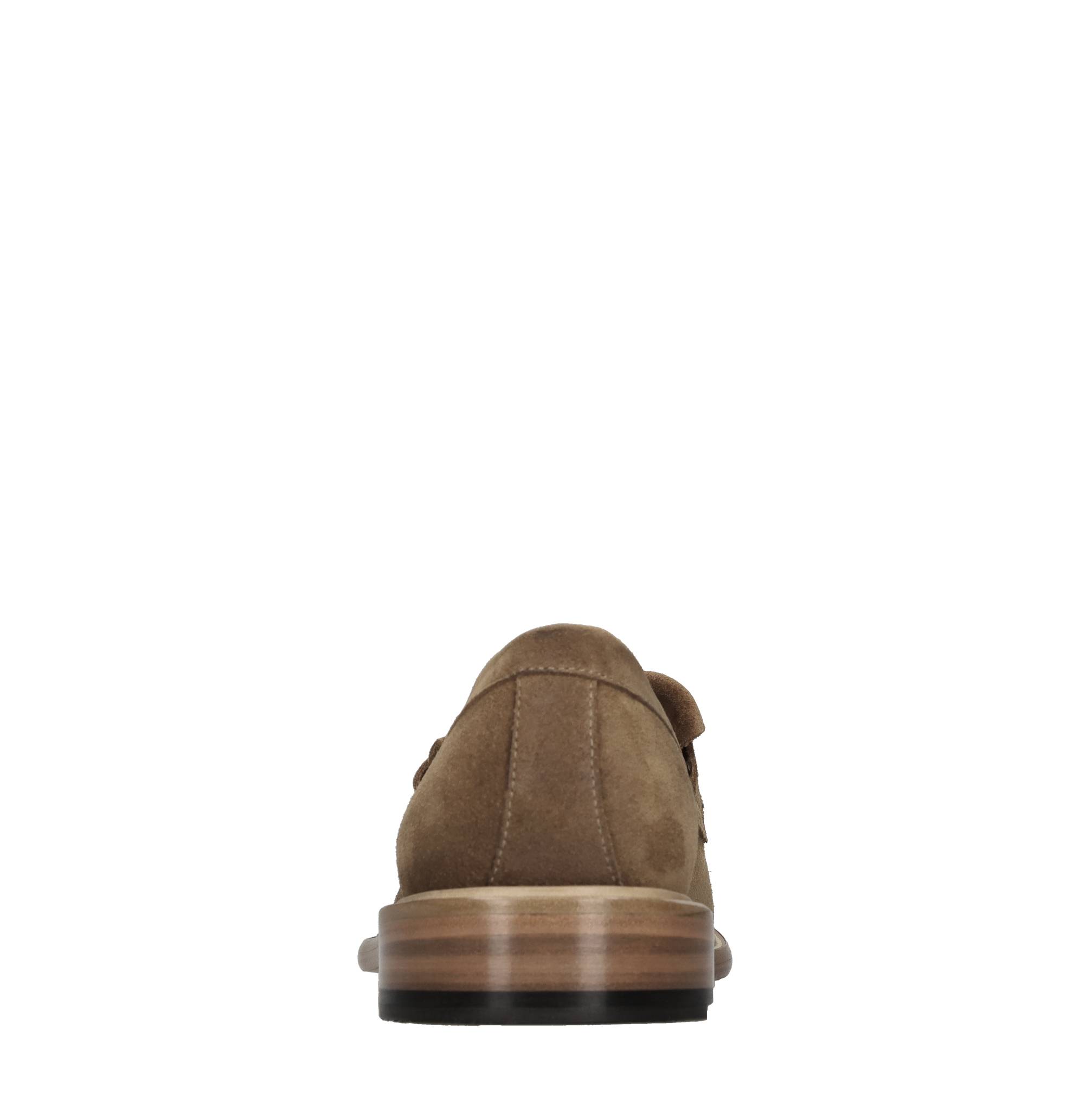 Mocassini in camoscio. Tomaia interna in pelle. Suola esterna in cuoio.