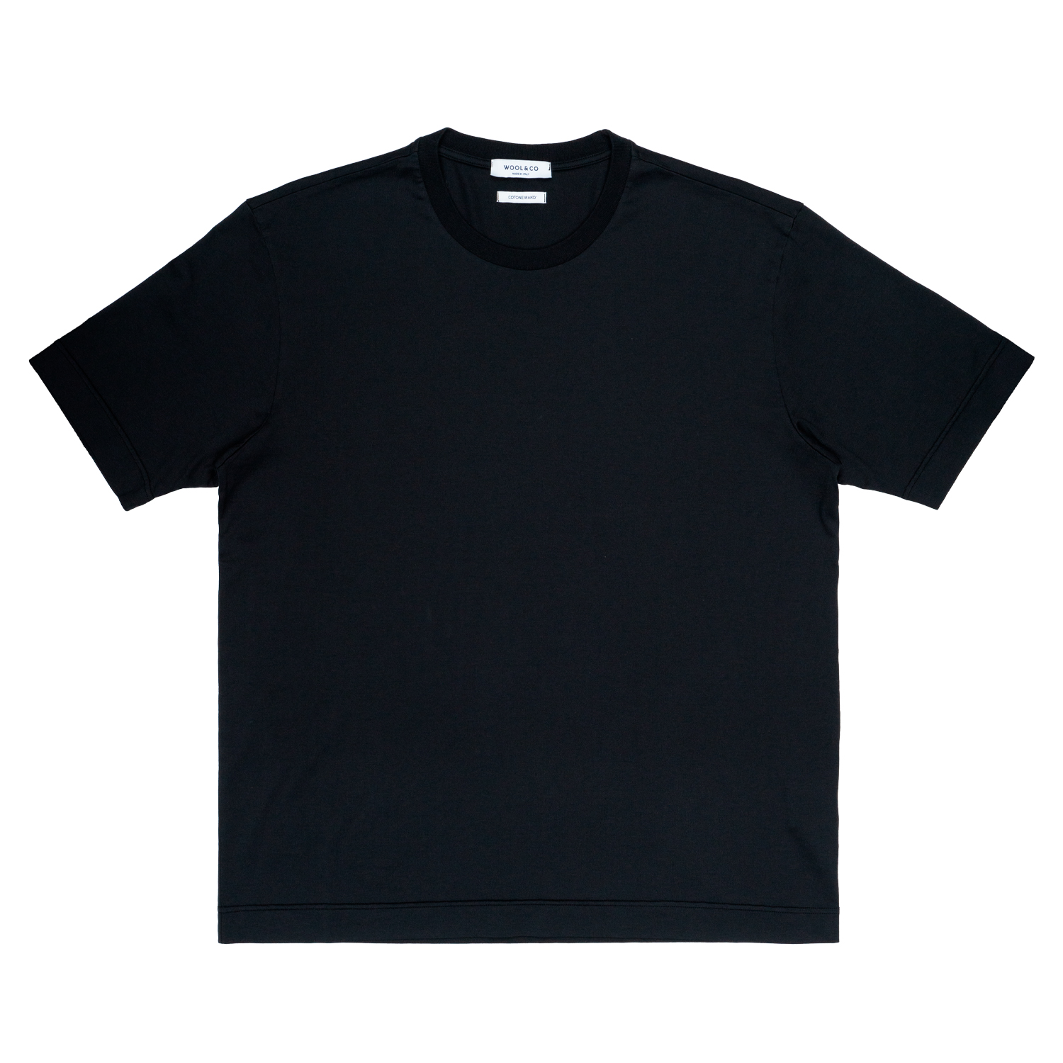 T-shirt Uomo Wool & Co Paricollo Cotone Makò Nero MM