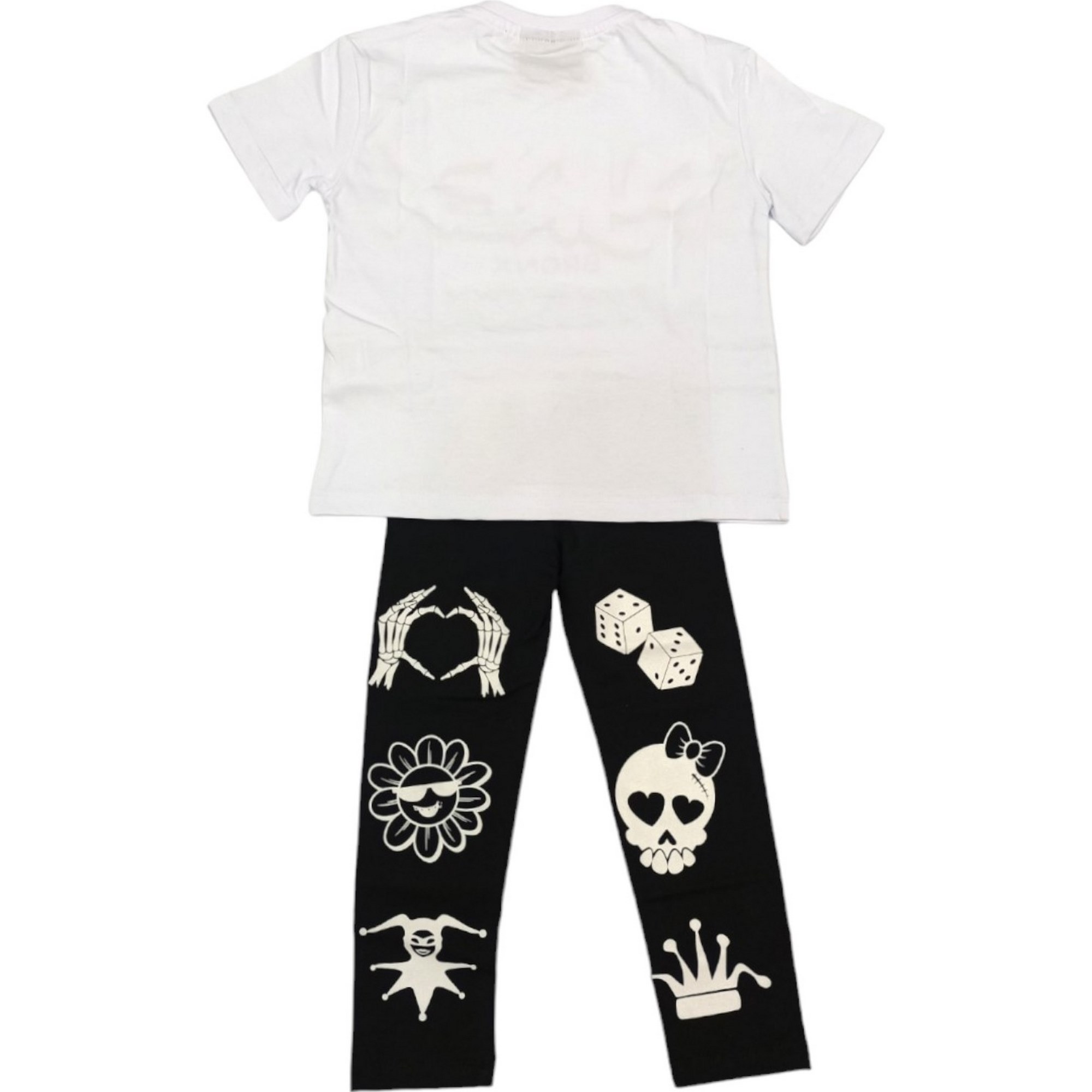 Complete 2 stuks bestaande uit witte T-Shirt+ bedrukte zwarte legging