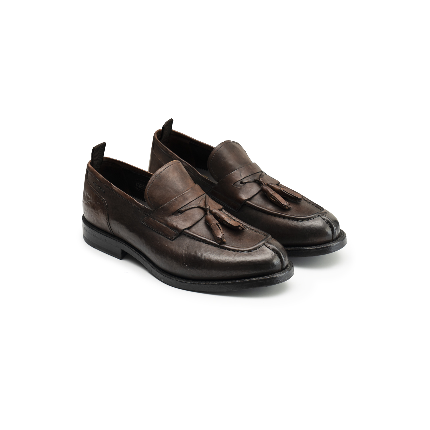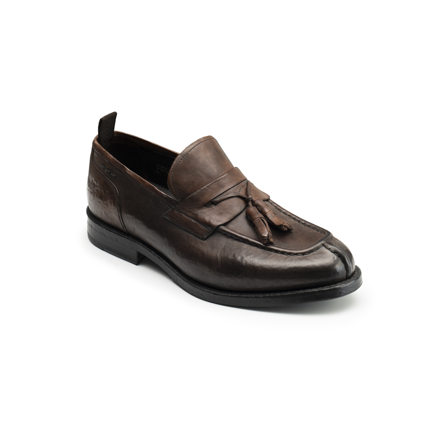 Casual en verfijnd, deze mocassin wordt geleverd met een Britse stijl en gedefinieerd; te dragen met alle outfits van seizoenen van de meest formele tot de meer informele geven een vleugje karakter aan uw look dankzij de verfijnde vakmanschap dat onderscheid Alexander Hotto. Bruine paardenhuid. In zwart leer. Zwarte kalfshuid. SOLETTA INTERN: Zwarte kalfshuid met goudkleurig logo. Details: Achtertrek in stof . . zijrek gewassen op steen.