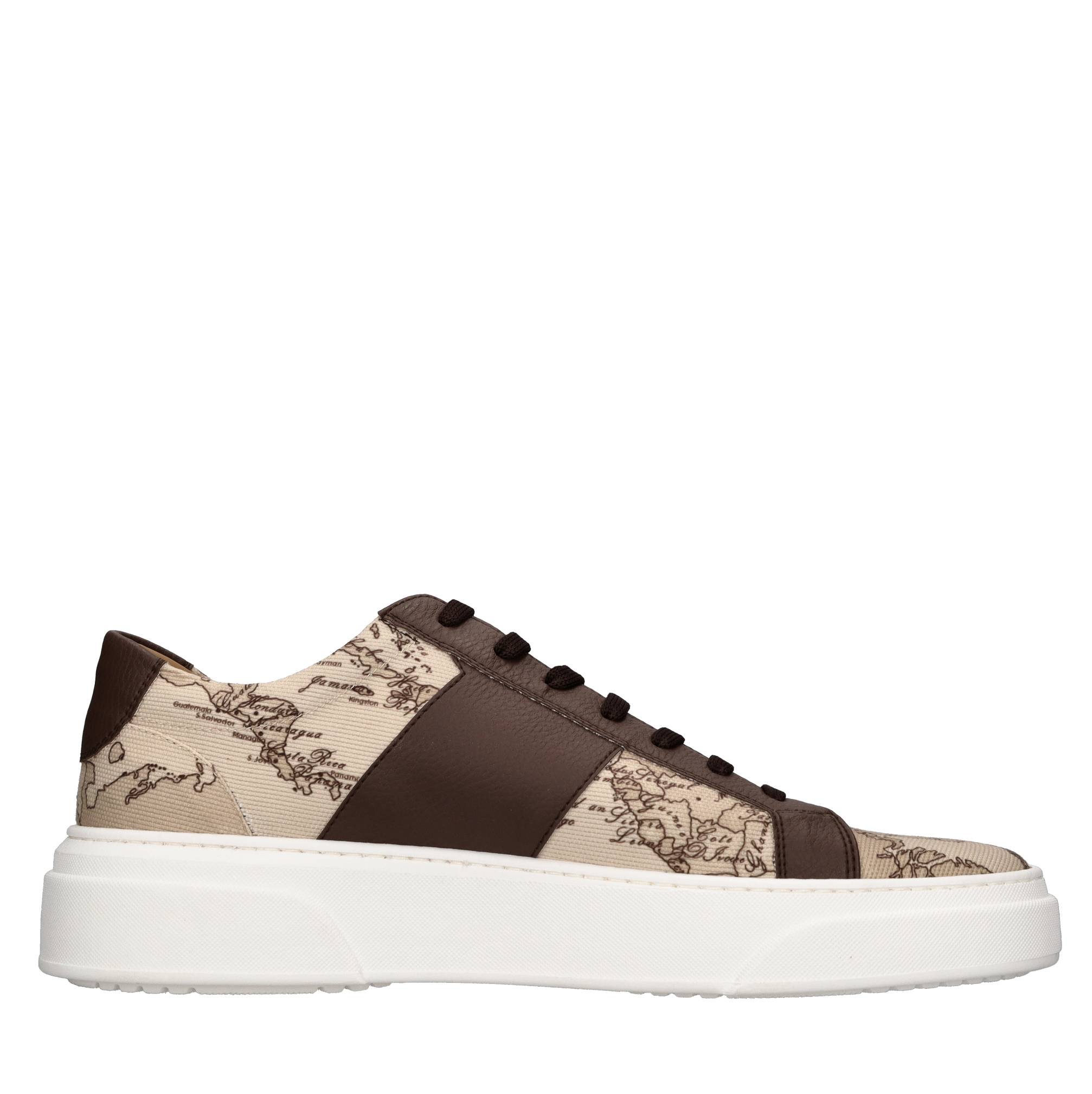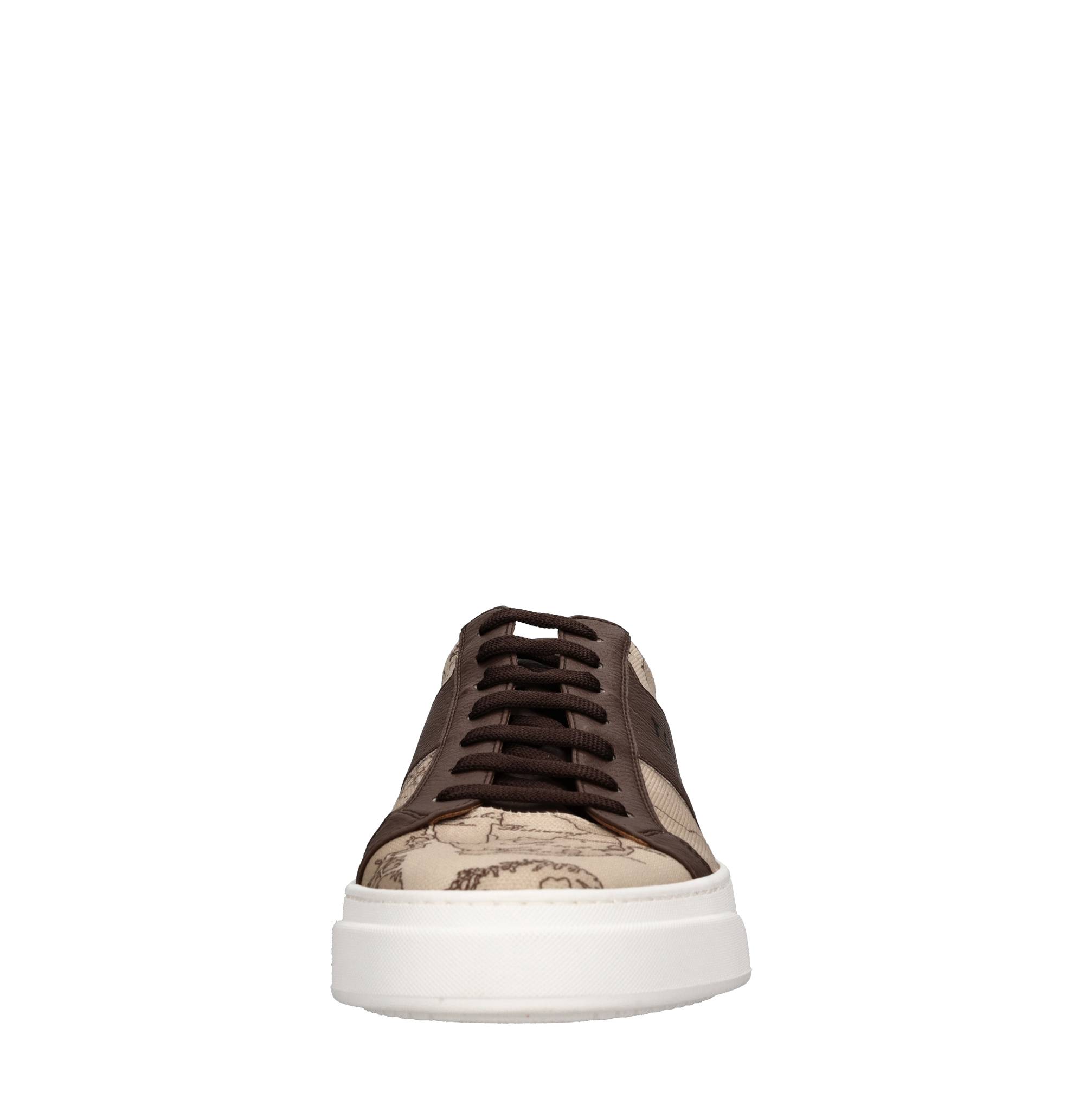 Leer en stof sneakers. Lederen bovenkant. Rubberen buitenzool.