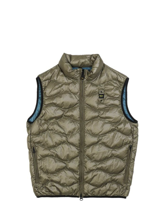 Mouwloze jas met licht controlepatroon, duurzame opvulling gestikt met golven en contrasterende kleurvoering Zipsluiting Sorona® ovaal gewatteerde Twee ritszakken Profiel in lycra op ronde mouwen en onderzakken met klittenband Passing met logo
