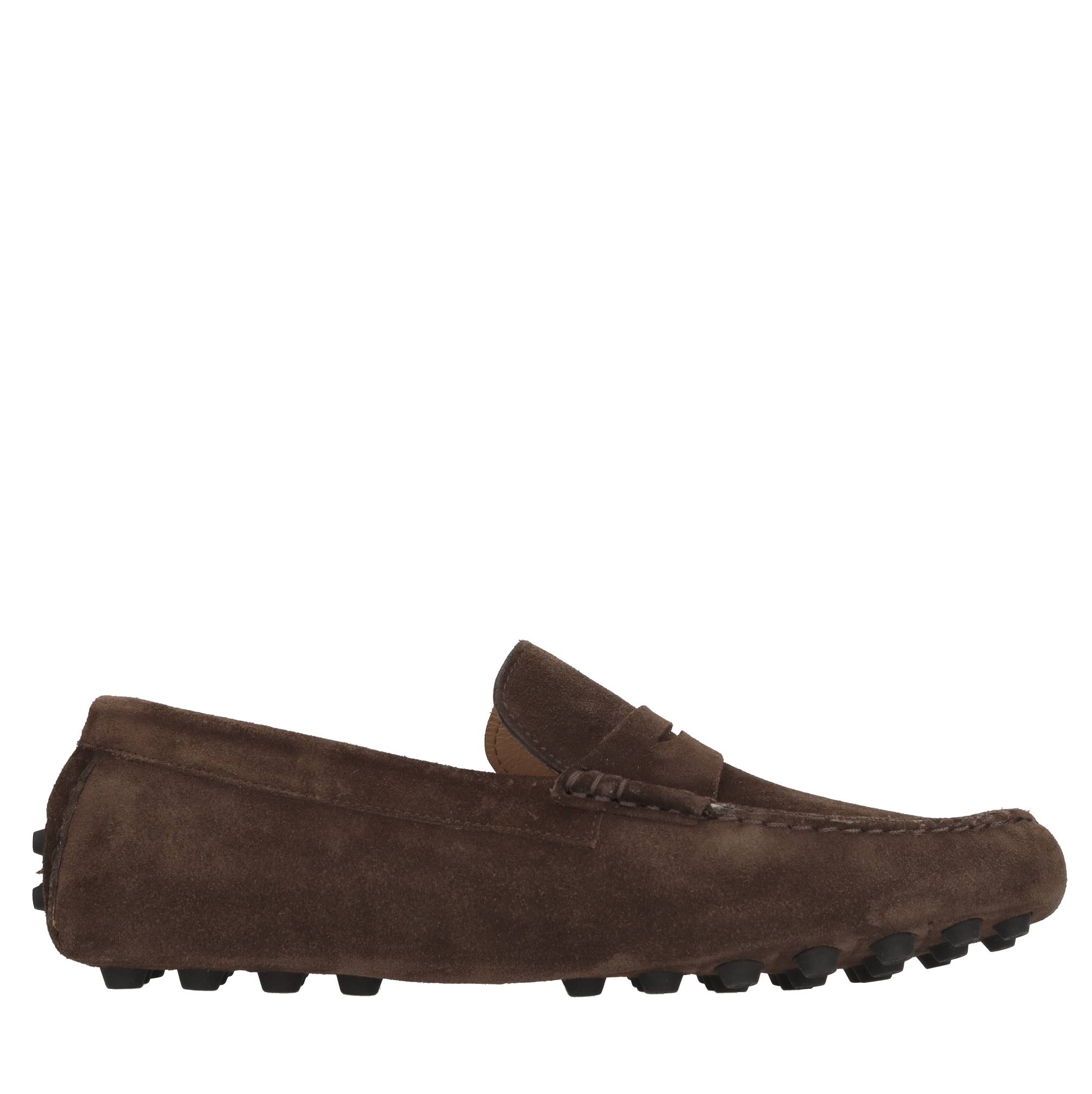 Moccasins in suède. Rubber en suède buitenzool. Lederen bovenkant. Interne hiel: 2 cm.
