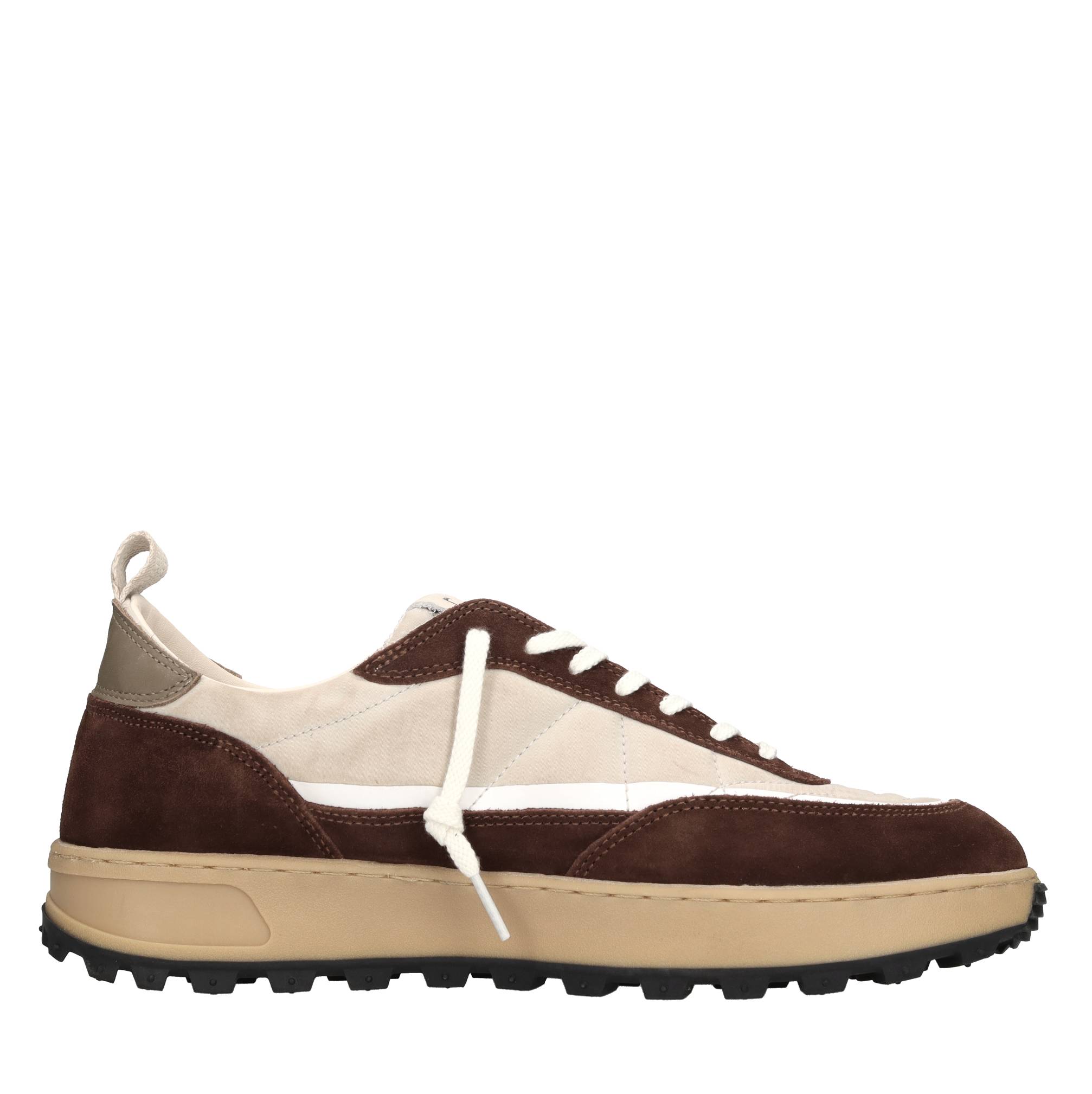 Suede en stof sneakers. Interne bovenkant in leer en stof. Rubberen buitenzool.