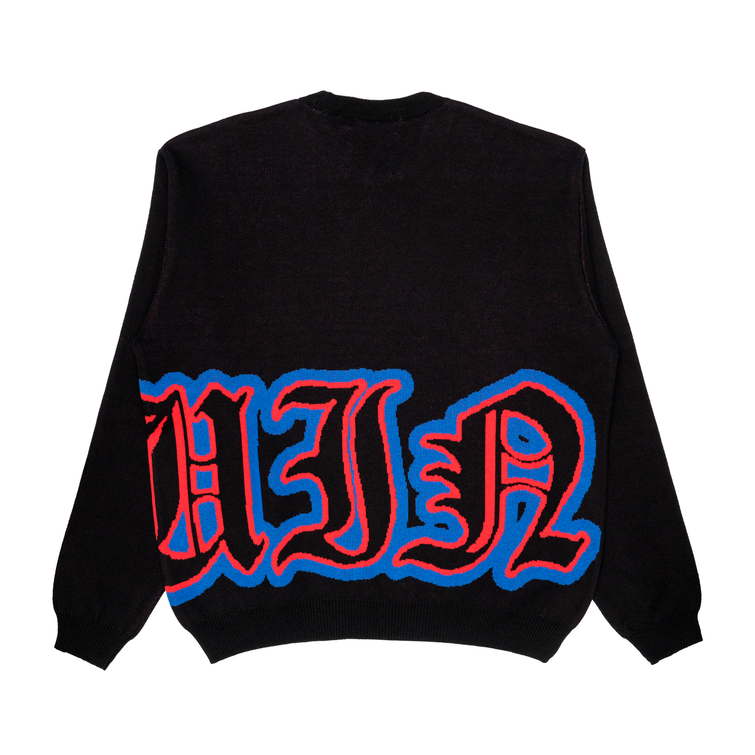De gotische trui Edwin is een gebreide oversize kledingstuk met grafische elementen van grote impact. Gemaakt van een lichte mix van 53% gerecycled katoen en 47% acryl, heeft het een dunne structuur, ideaal voor middenseizoen gelaagdheid. Het top detail is de Katakana Gotische jacquard aan zowel voor- als achterkant, die een gedurfde visuele impact biedt. Deze trui is afgewerkt in een zwarte kleur en combineert hedendaagse streetwear esthetiek met duurzame materialen.