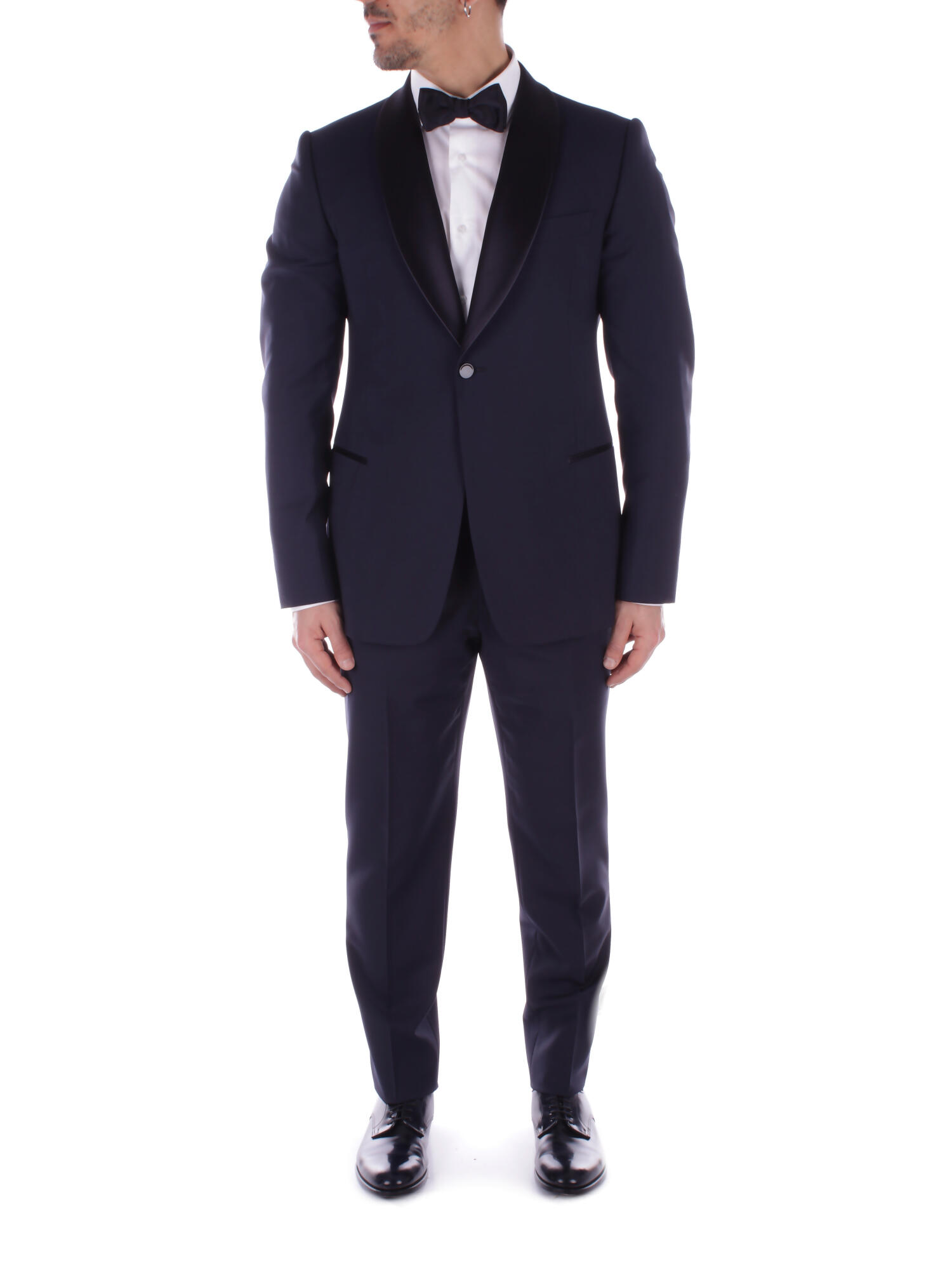 Emporio Armani herenpak Single-breasted sluiting Twee steekzakken Broek met rits en haak Modelhoogte: 1,77 cm Gedragen maat: 50 Samenstelling: 84% scheerwol 15% mohair 1% elastaan ​​Leverancierscode: E31VB8 F1549922