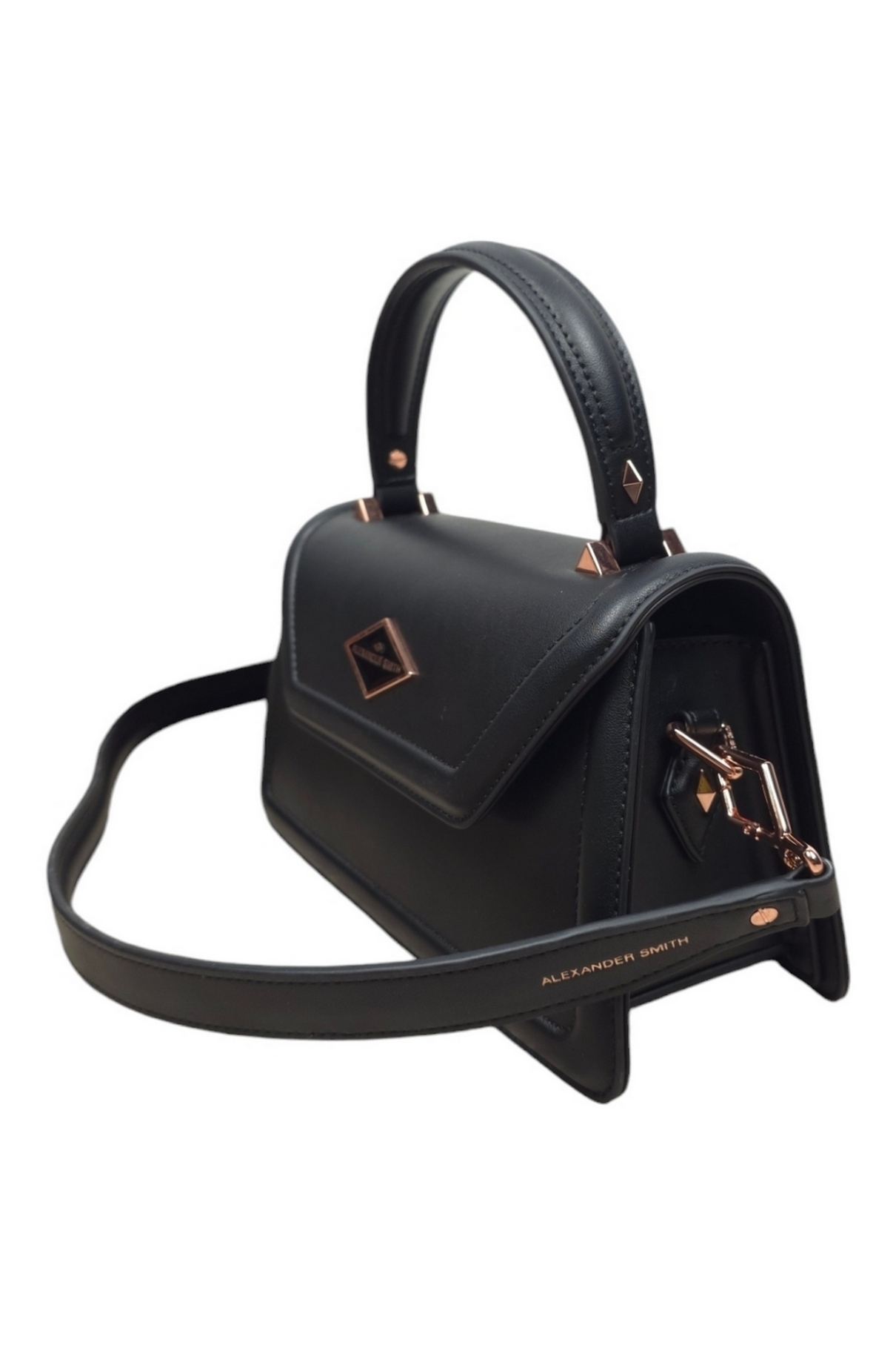 Zak Alexander Smith. Elisabeth Mini model. Ecopelle. Plat handvat. Afneembare schouderband. Magnetische sluiting. Materiaal: 100% nep leer. Afmeting: 21 x 14 x 9,5 cm.