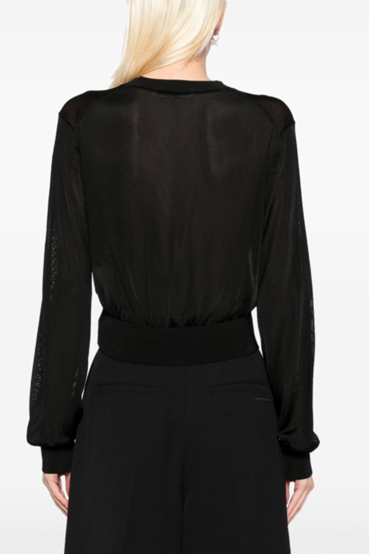Ronde hals patroon, lange mouwen, frontale kleur, kort ontwerp, manchetten en elastische rand. 100% Viscose samenstelling
