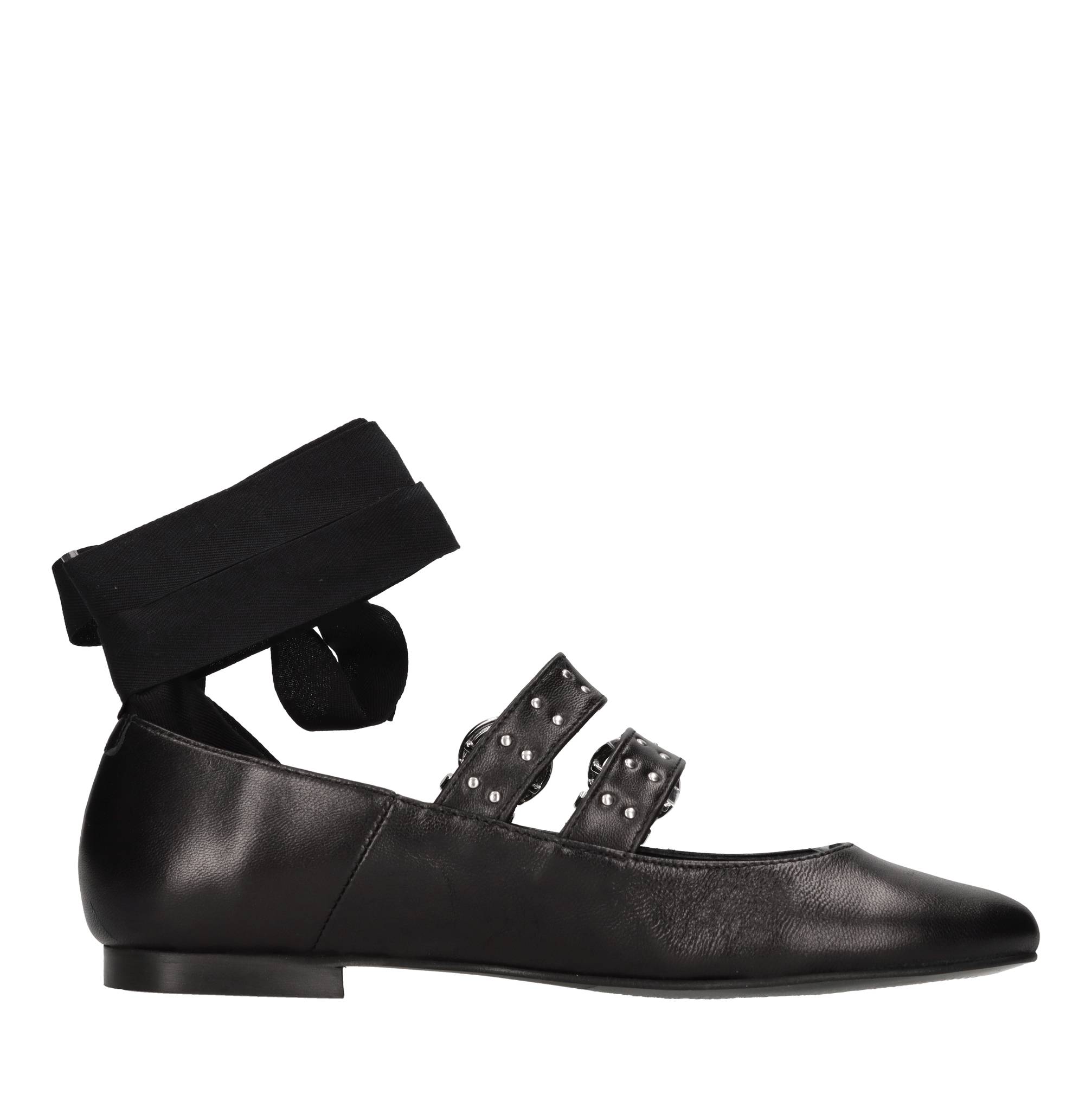 Lederen dansers. Dubbele gesp. Borchie. Lederen bovenkant. Rubberen buitenzool.