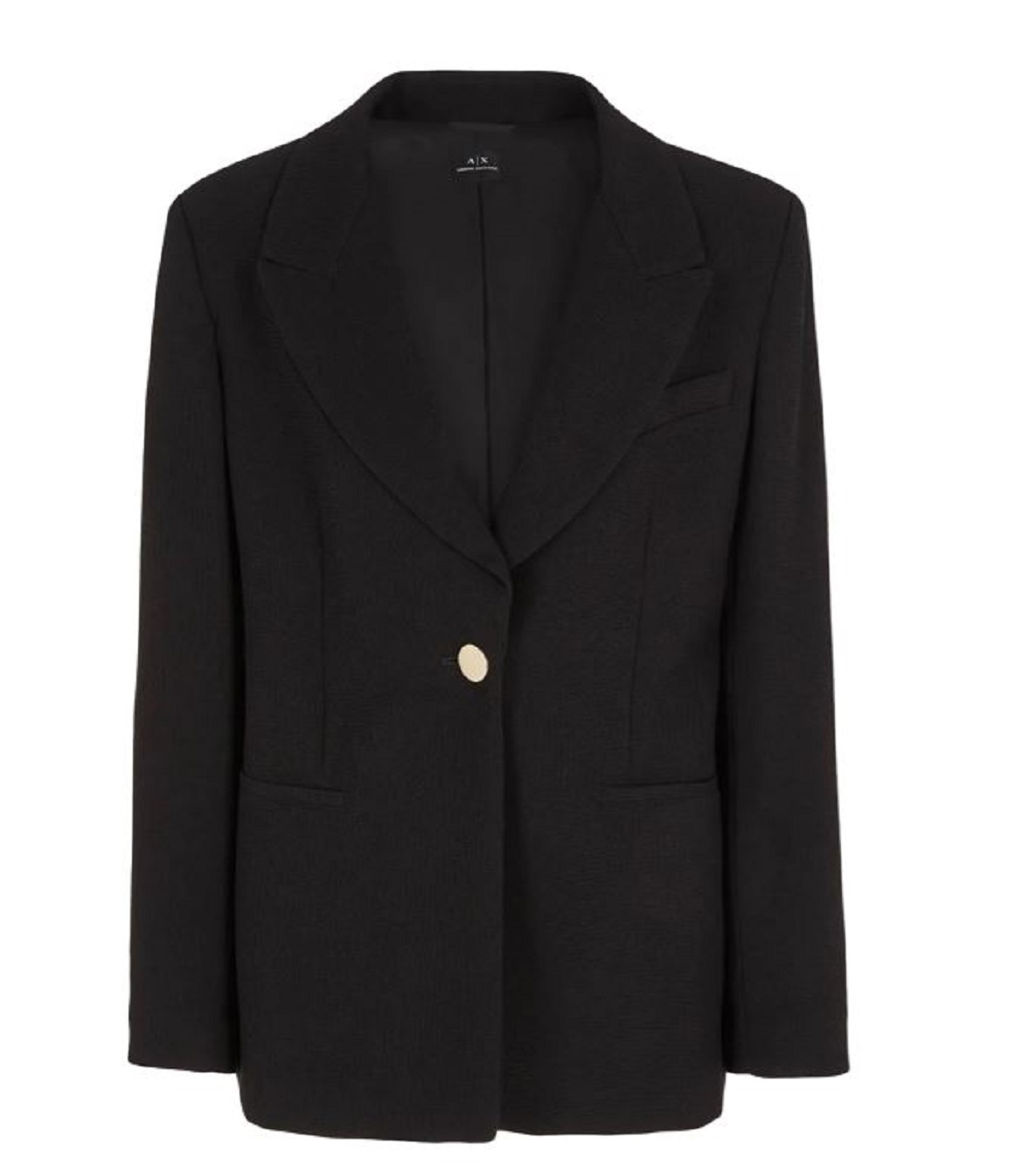 Details: Armani Exchange Damesjas voorgesteld met een slanke en lineaire snit, gekenmerkt door proportionele revers, sluiting met enkele knoop, dit model nodigt je uit om te spelen met outfits en looks in een genderfluïd perspectief. Pasvorm: normale pasvorm