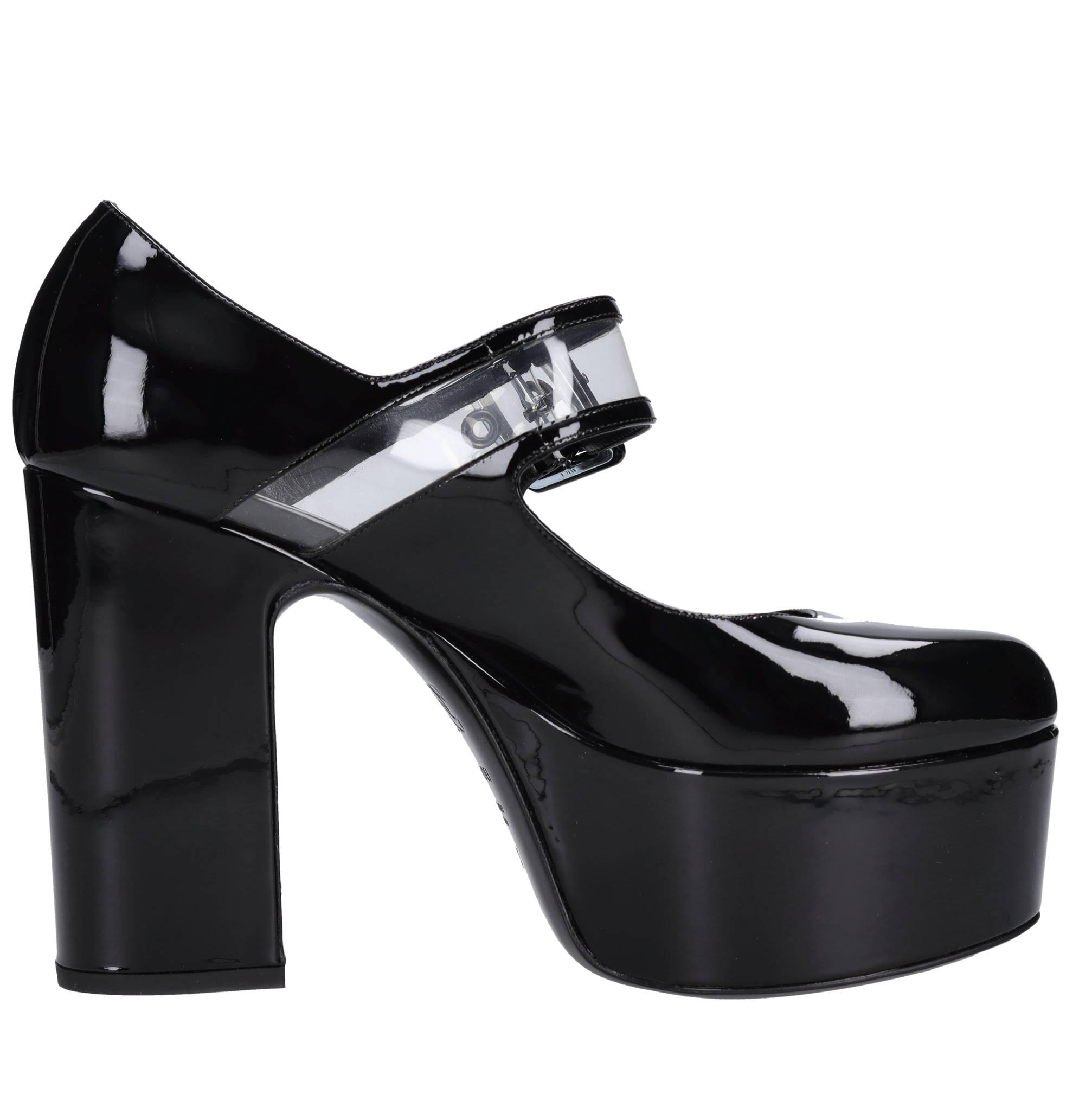 Verfdecolleté. Lederen buitenzool. Lederen bovenkant. Plateaux: 4,5 cm. Verzonden op neutrale doos.