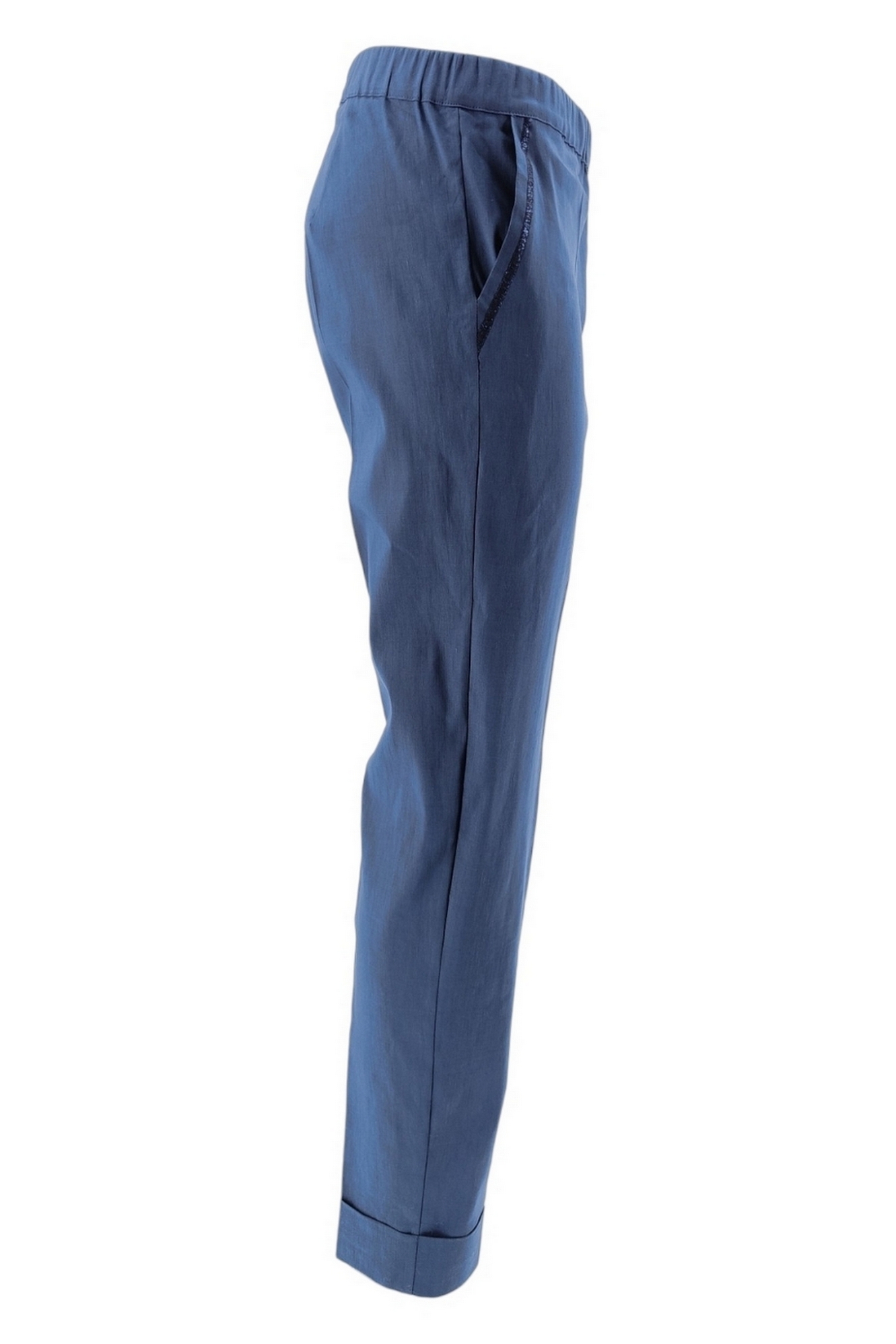 Broek D.exterior in linnen. Elastiek in het leven. Zijzakken. Details in Lurex op de zakken. Terug naar beneden. Samenstelling: 69% linnen, 31% elastaan. Gemaakt in Italië.