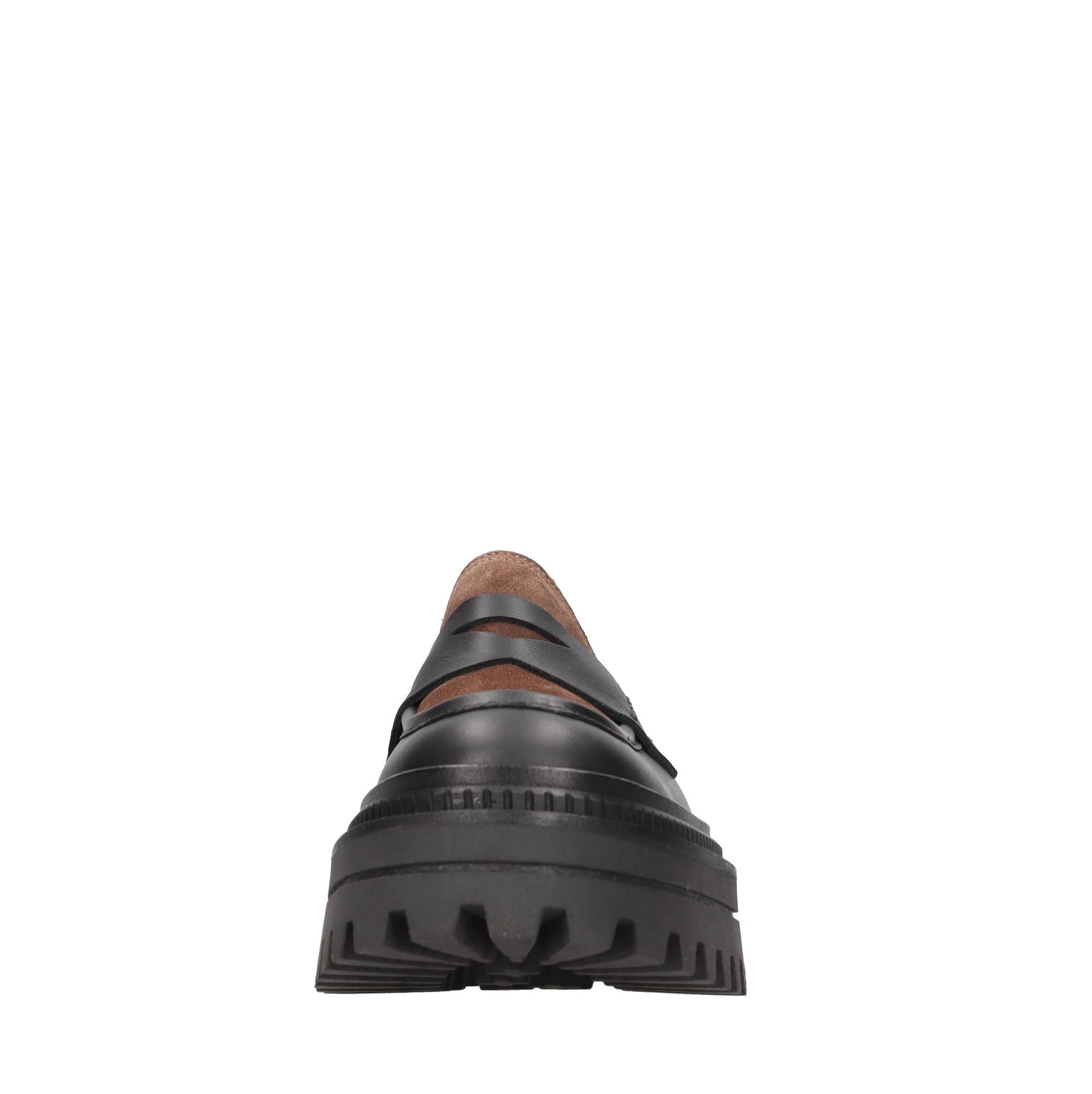 Leren mocassins. Plateau 3cm. Rubberen buitenzool. Intern leren bovenwerk.