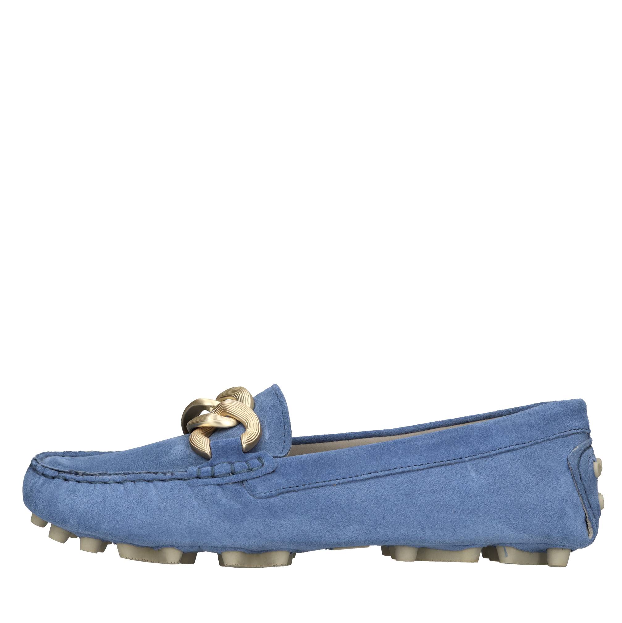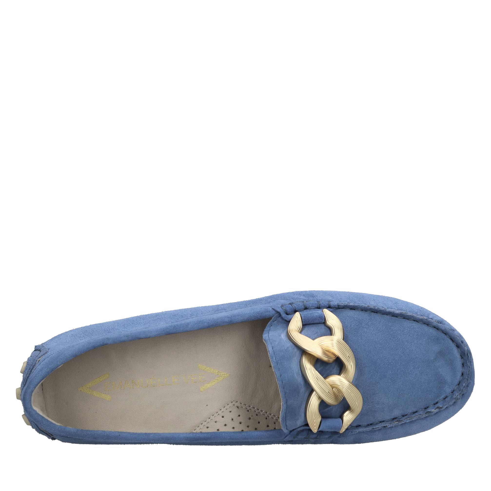 Moccasins in suède. Goudkleurige toepassingen. Lederen bovenkant. Buitenzool in suède en rubber. Interne hiel: 2cm.