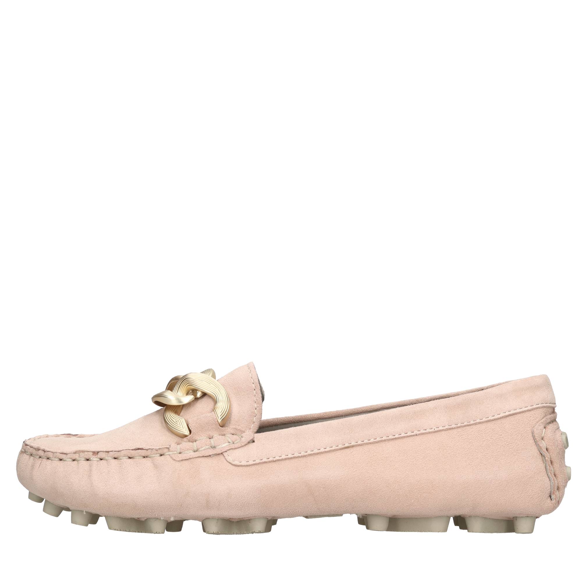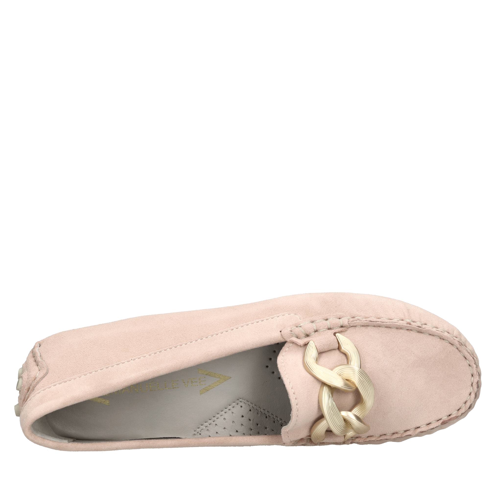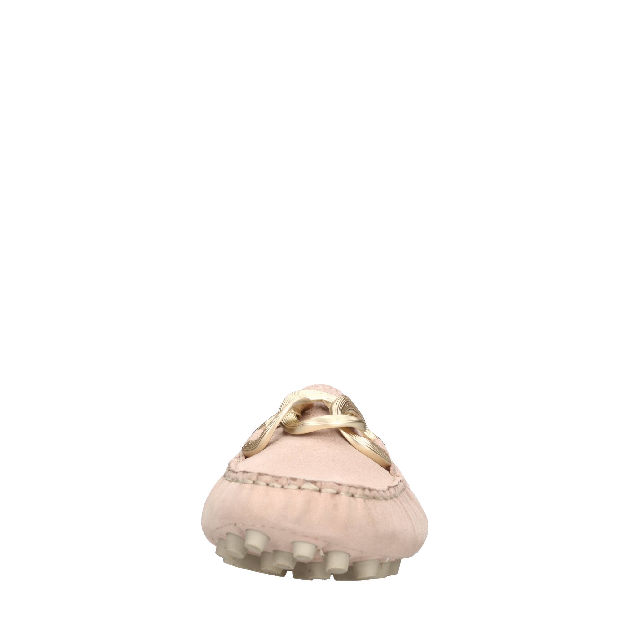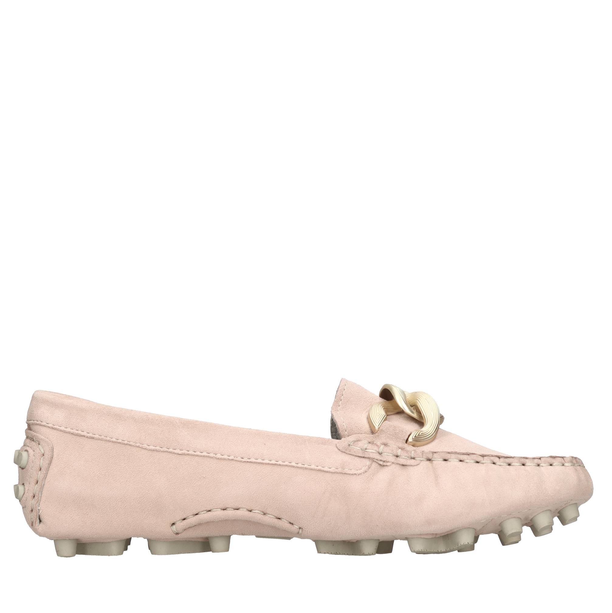 Moccasins in suède. Goudkleurige toepassingen. Lederen bovenkant. Buitenzool in suède en rubber. Interne hiel: 2cm.