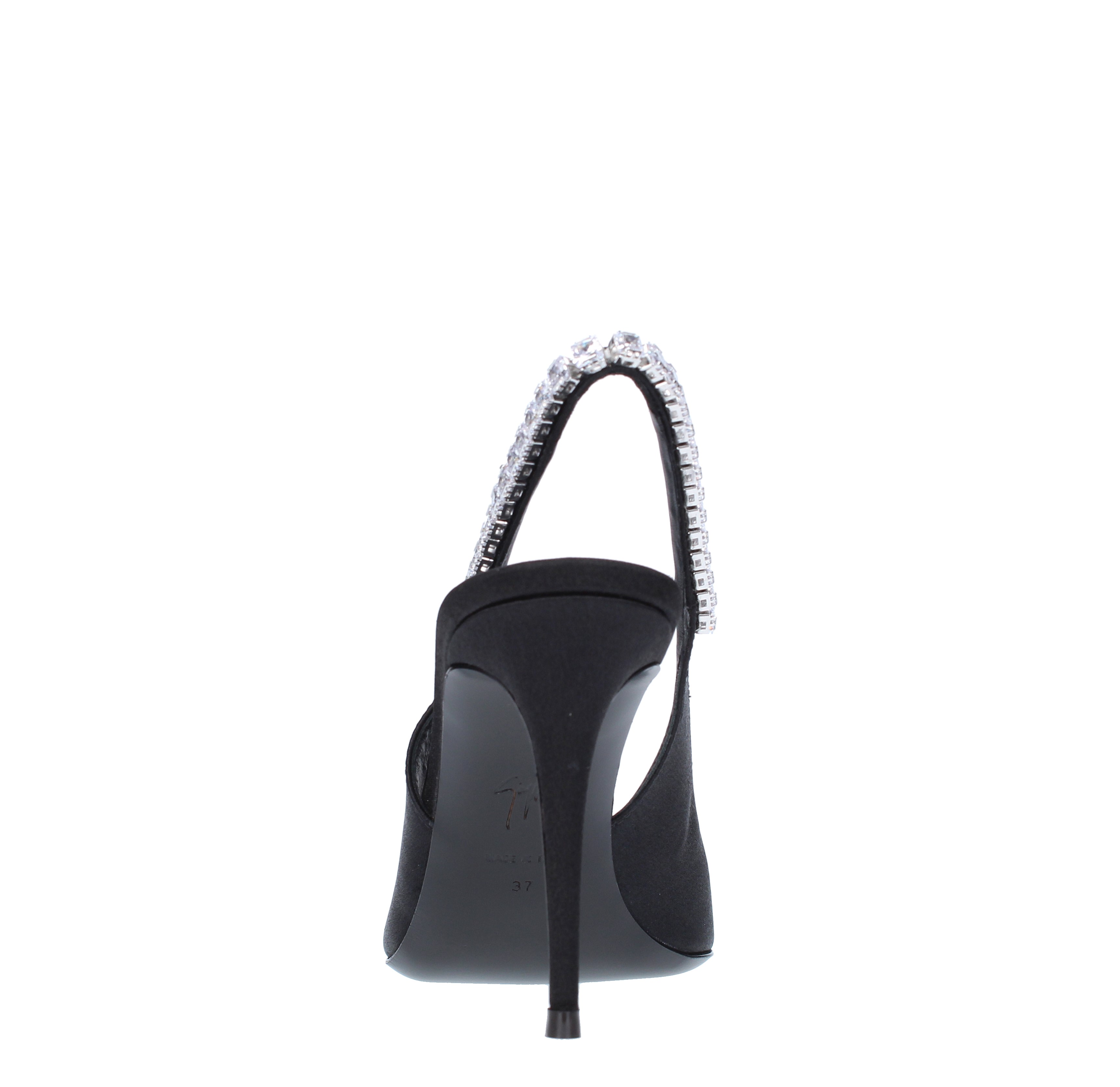 Rachyl slingback decolleté van stof. Strass-applicaties op het bandje. Leren buitenzool. Leren binnenwerk.