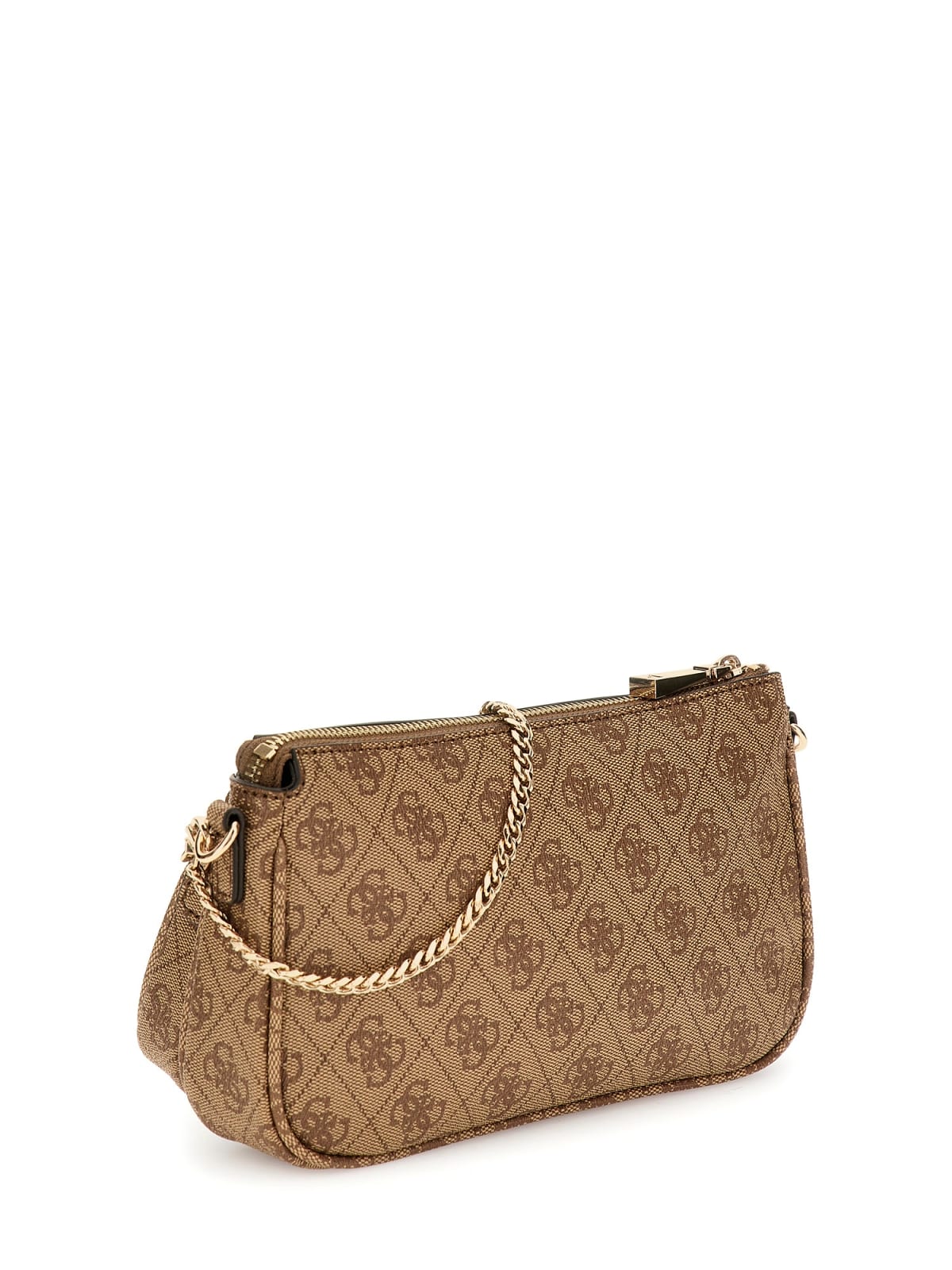 De schoudertas Guess voor vrouwen, gemaakt van all-over bruine lenden stof, combineert modern design en functionaliteit. Het bestaat uit dubbel verwijderbare buidel met ritssluiting, verrijkt met het voorste driehoekige logo en een gouden ketting die een glam touch aan de look toevoegt. Veelzijdig en praktisch, het kan gedragen worden zowel crossbody met verstelbare schouderband en schouderband dankzij de ketting. Een perfect accessoire voor casual en avondkleding.