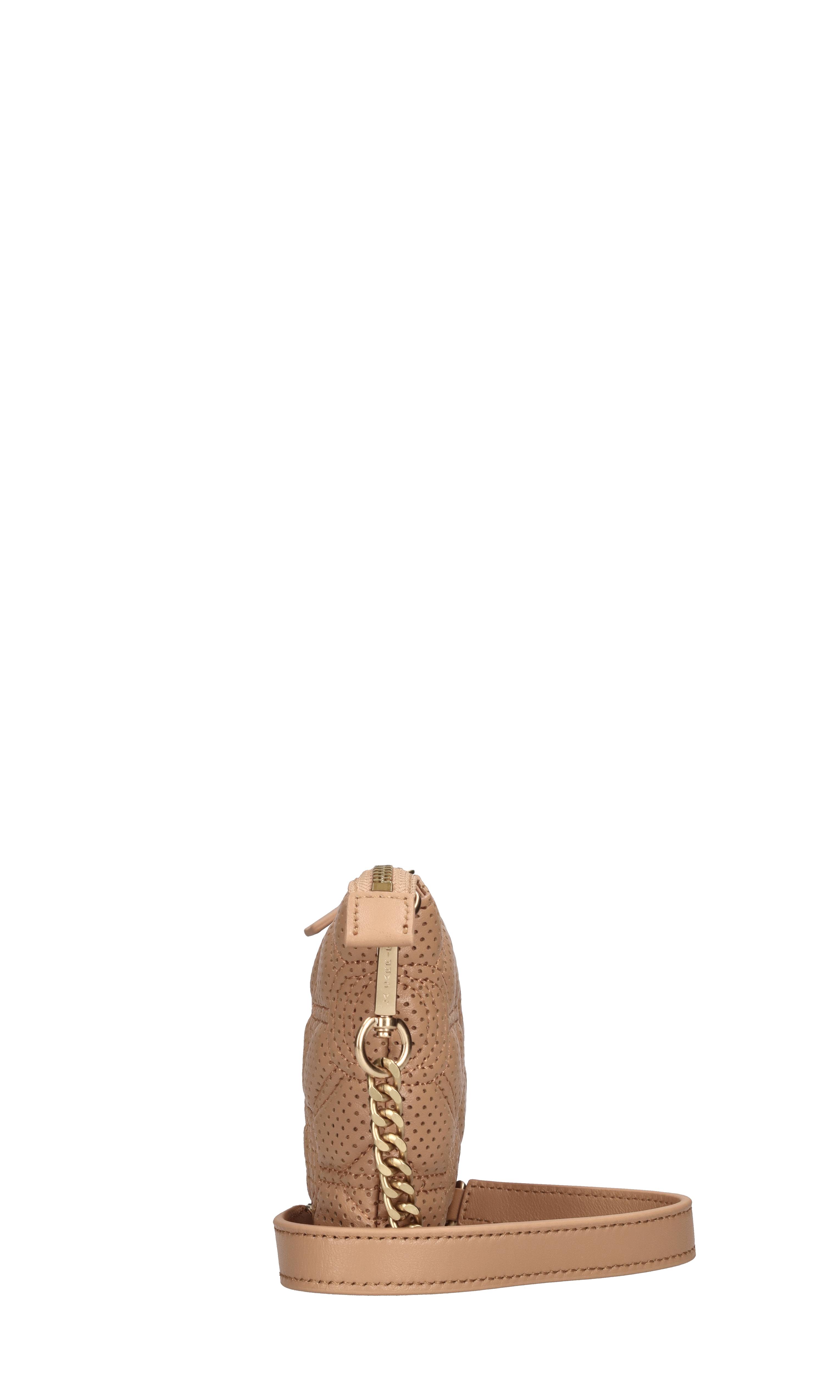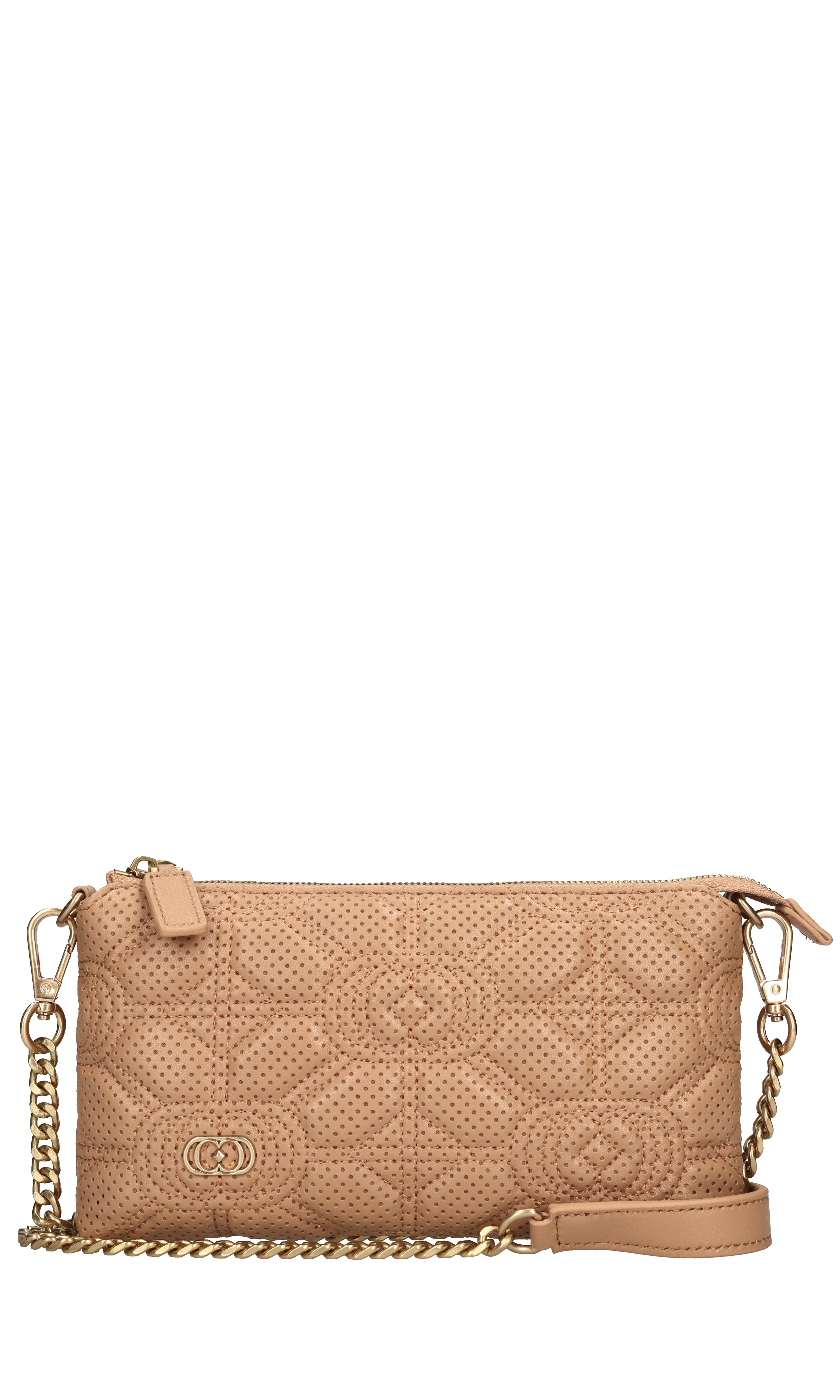 Stich&Spoon leren tas. Twee compartimenten. Zip sluiting. Gouden ketting schouderband in verwijderbaar leer.