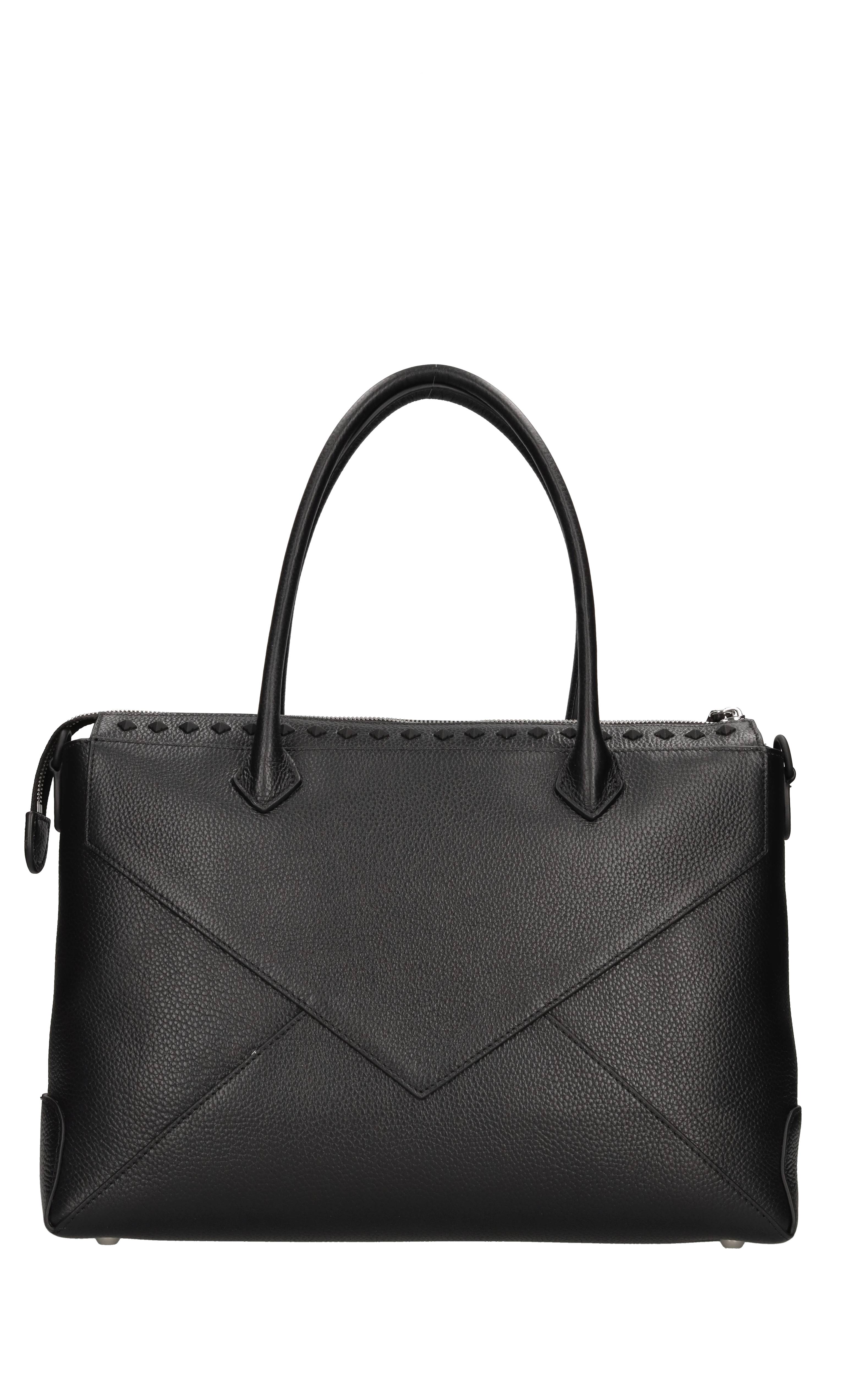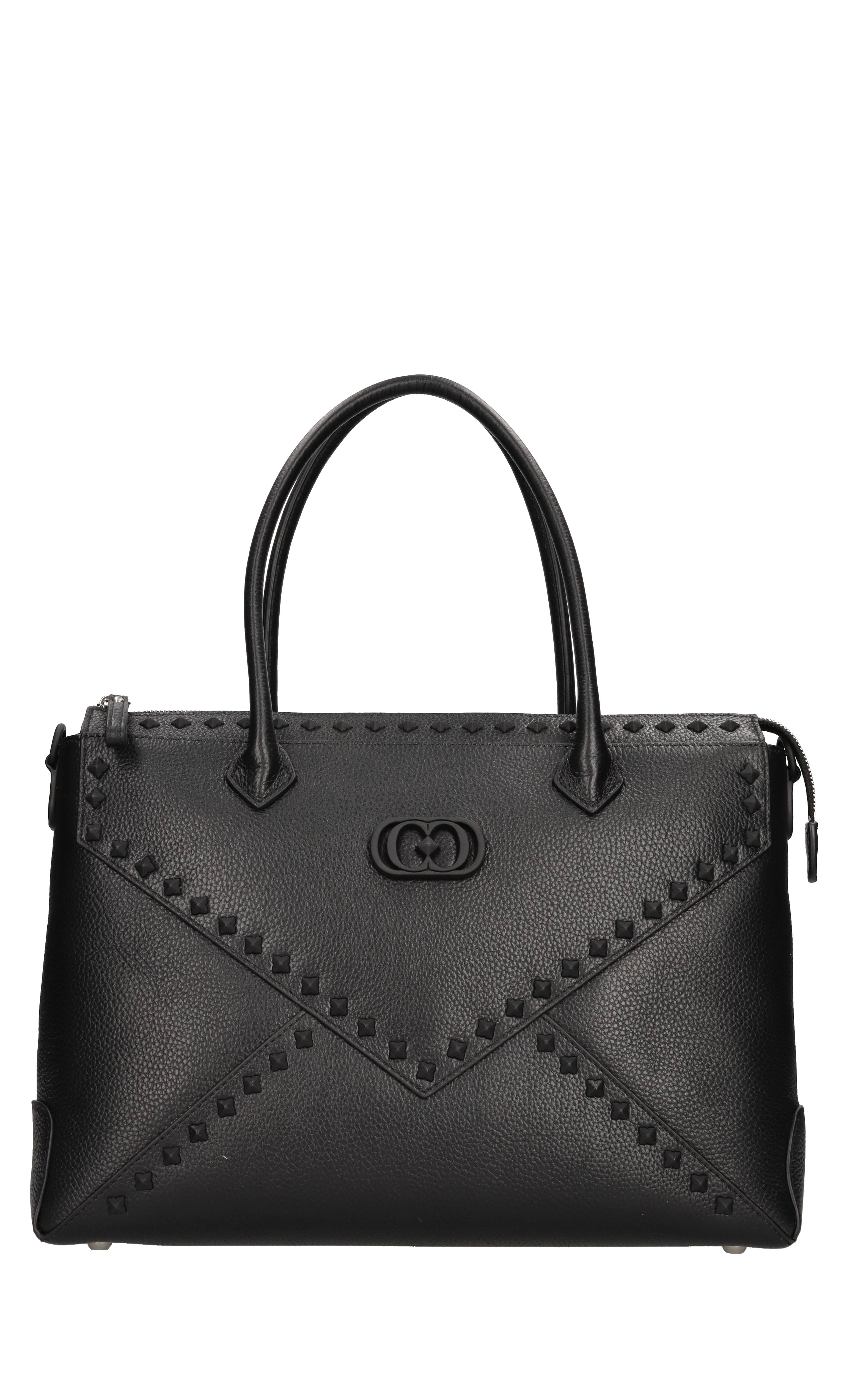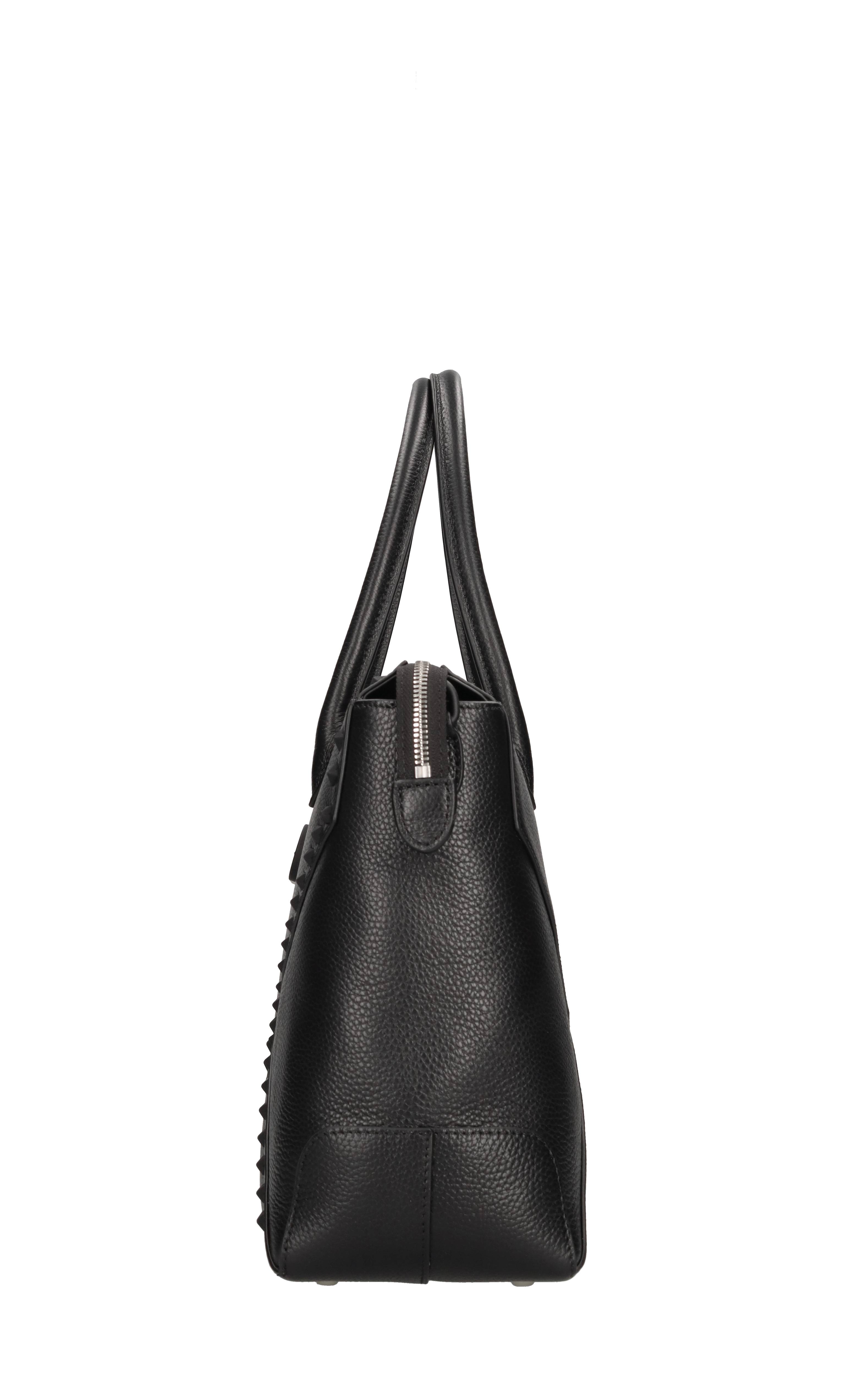 Frivolous leren tas en studs. Een compartiment. Details in metalen toon op toon. Zip sluiting. Ketting Toon schouderband op verwijderbare leren toon.