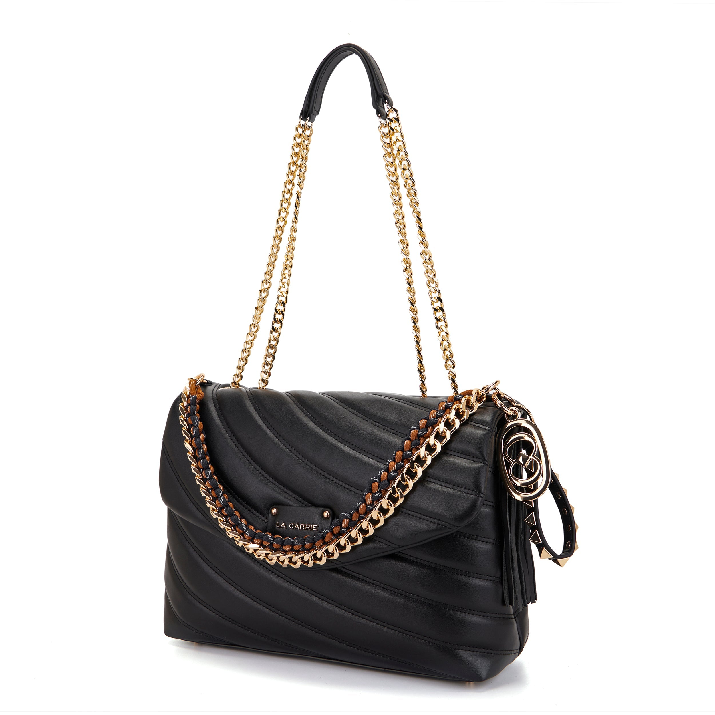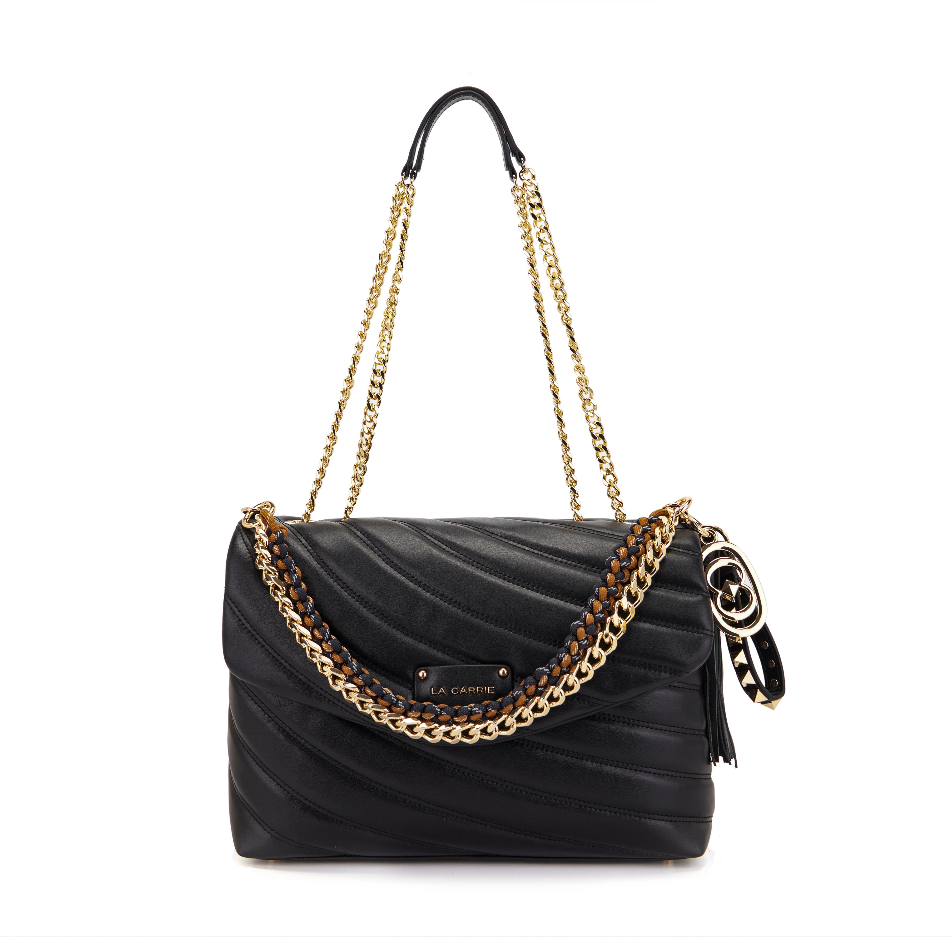 Lederen schoudertas met kettingen en handvat en verwijderbare schouderband Grootte: 32x12,5x23cm