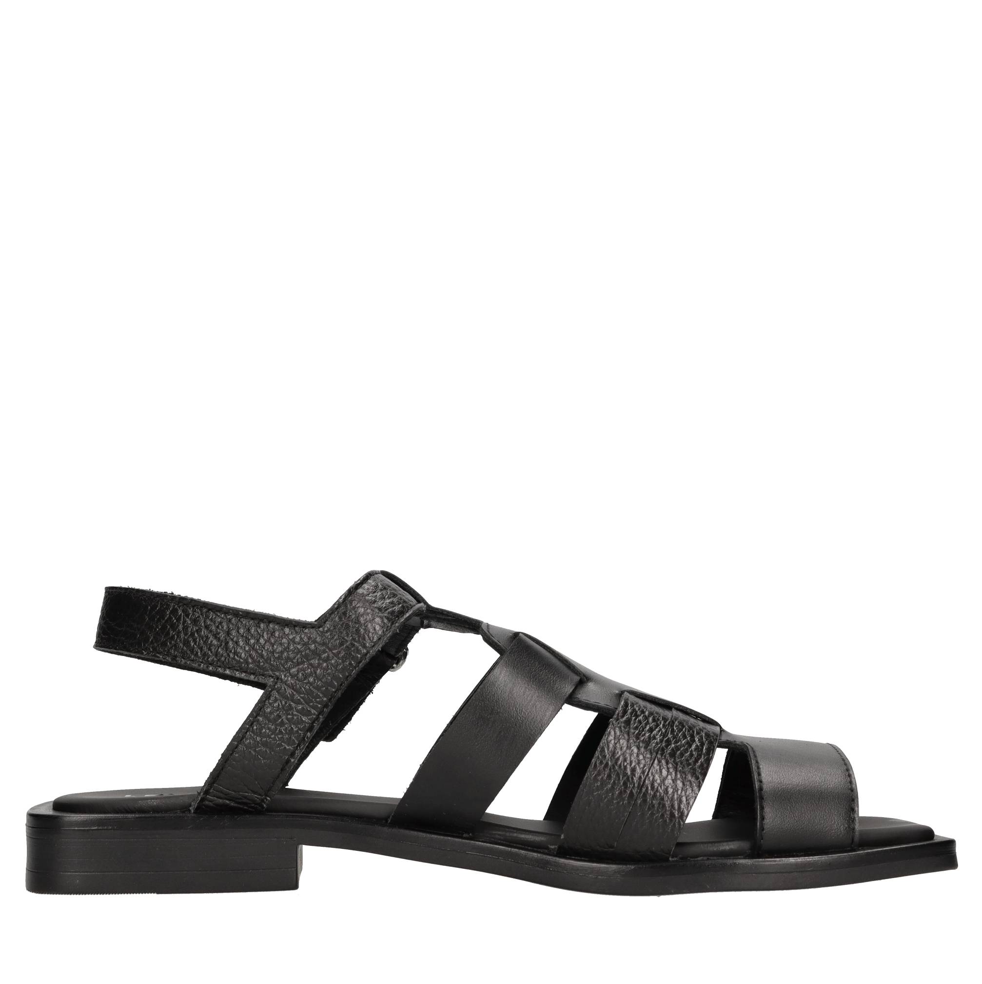 Plat leer sandalen. Rubberen buitenzool. Lederen bovenkant.