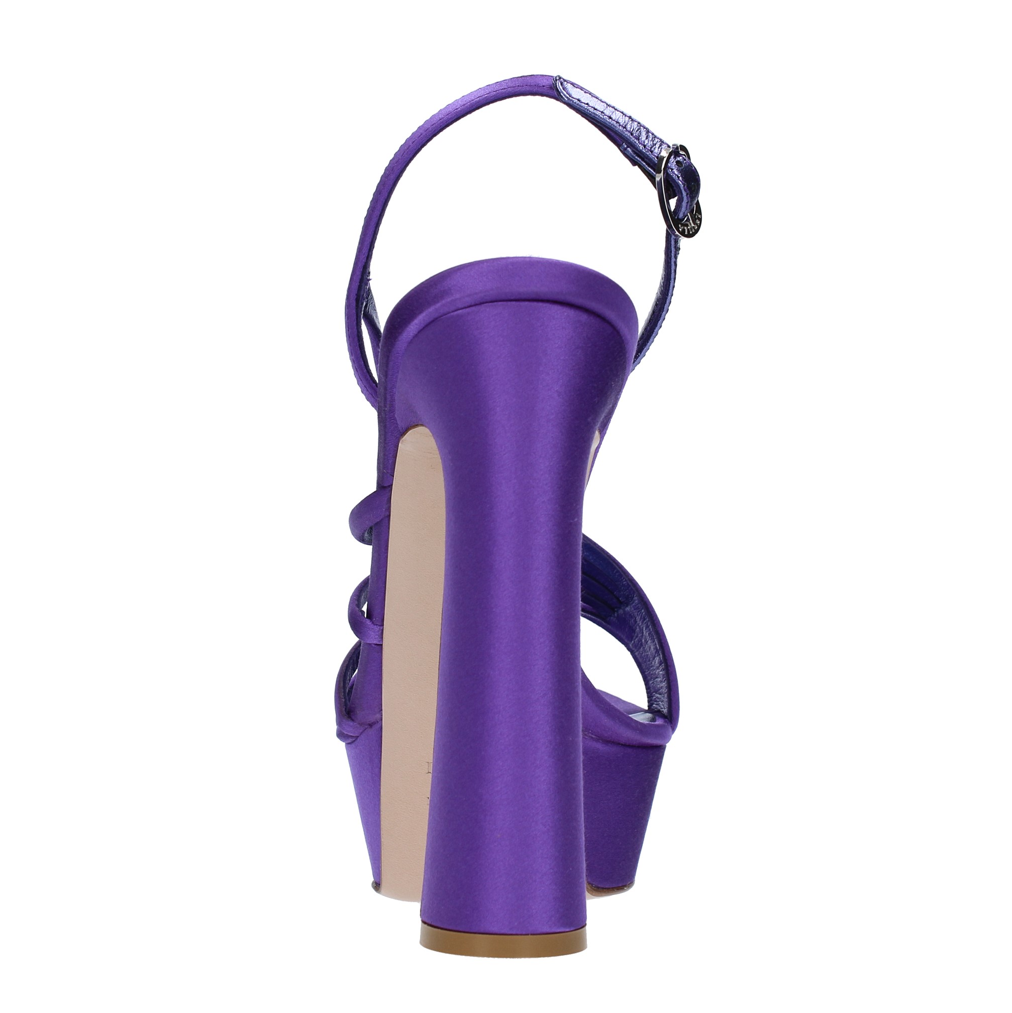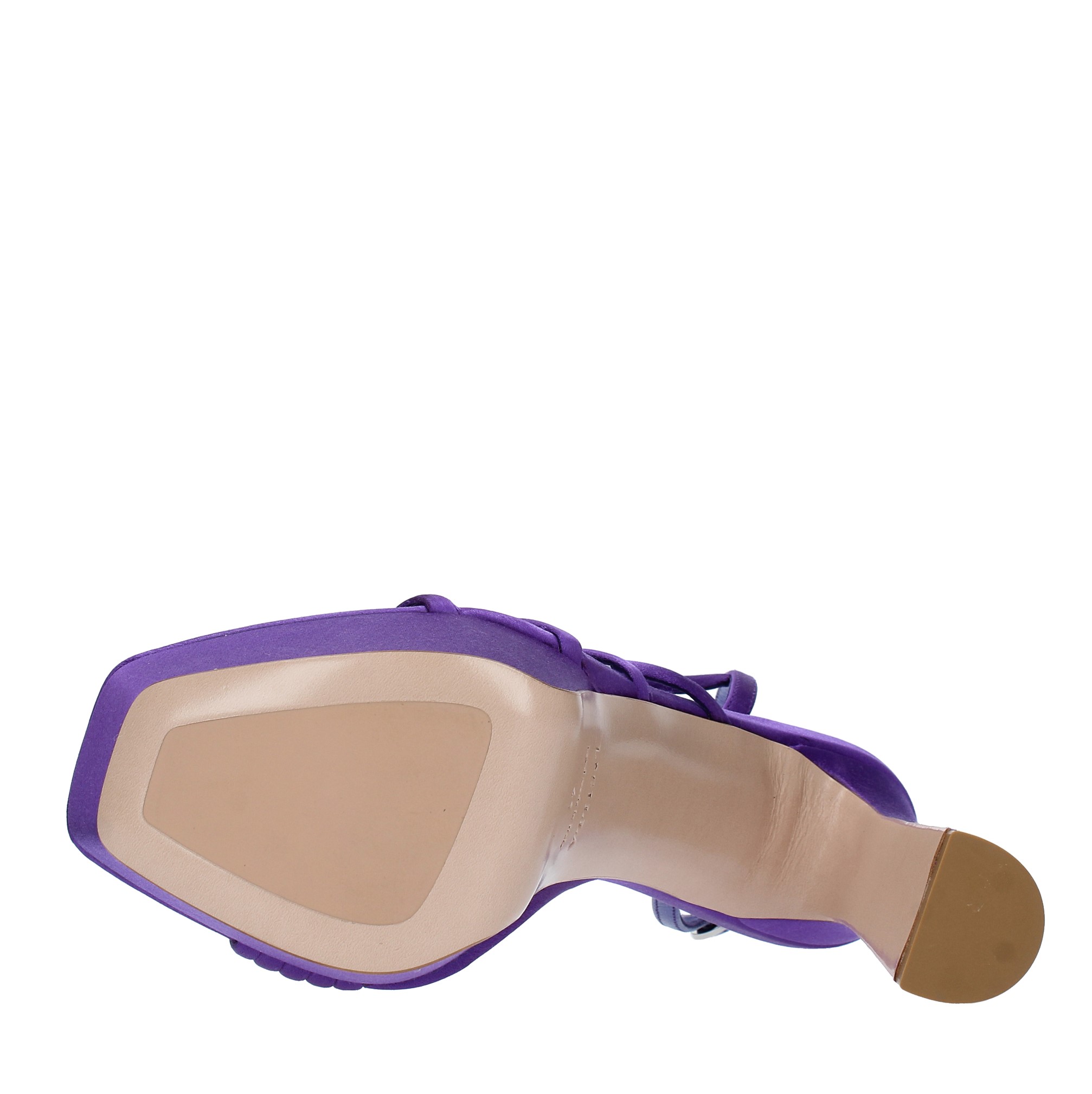 Satijnen sandalen. Plateau 4,5 cm. Buitenzool van leer en rubber. Intern bovenwerk van leer en satijn.