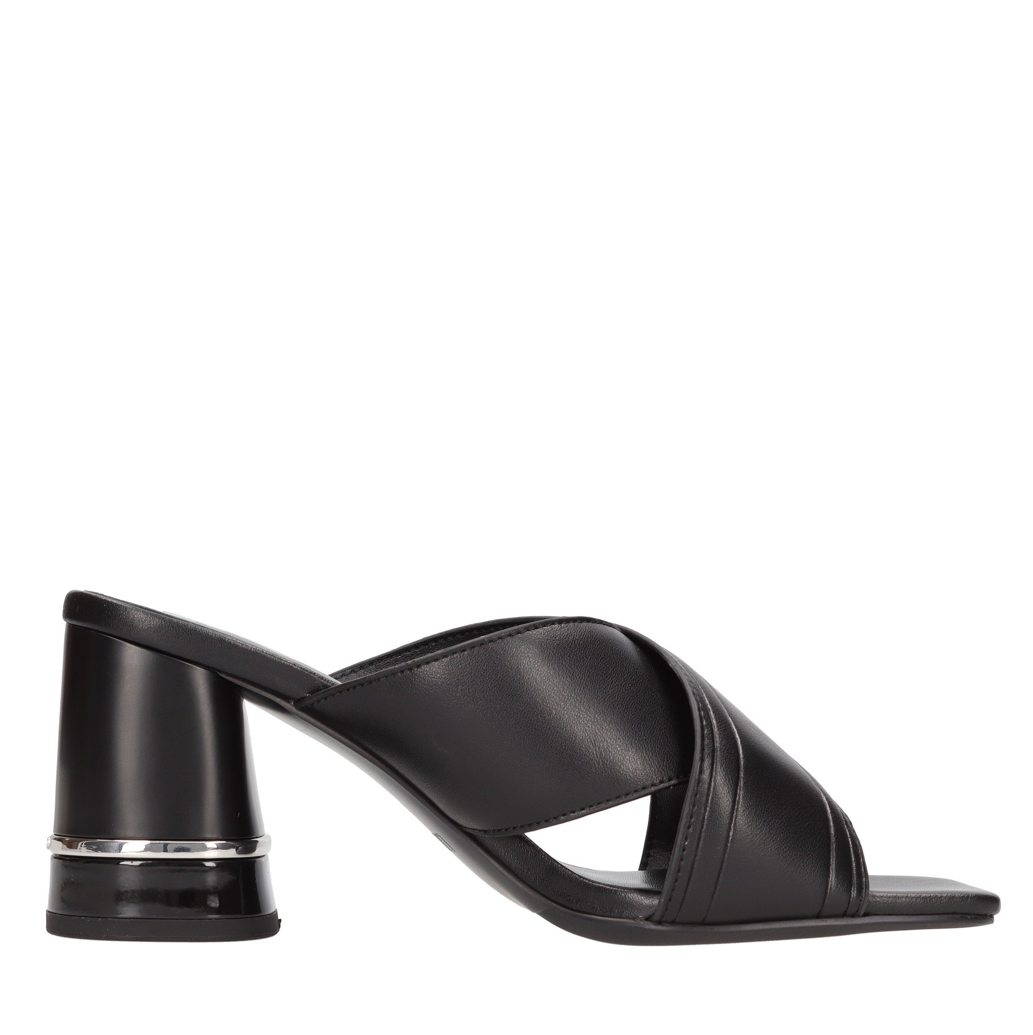 Muiltjes van eco-leer. Intern bovenwerk van leer en eco-leer. Buitenzool van synthetisch materiaal.