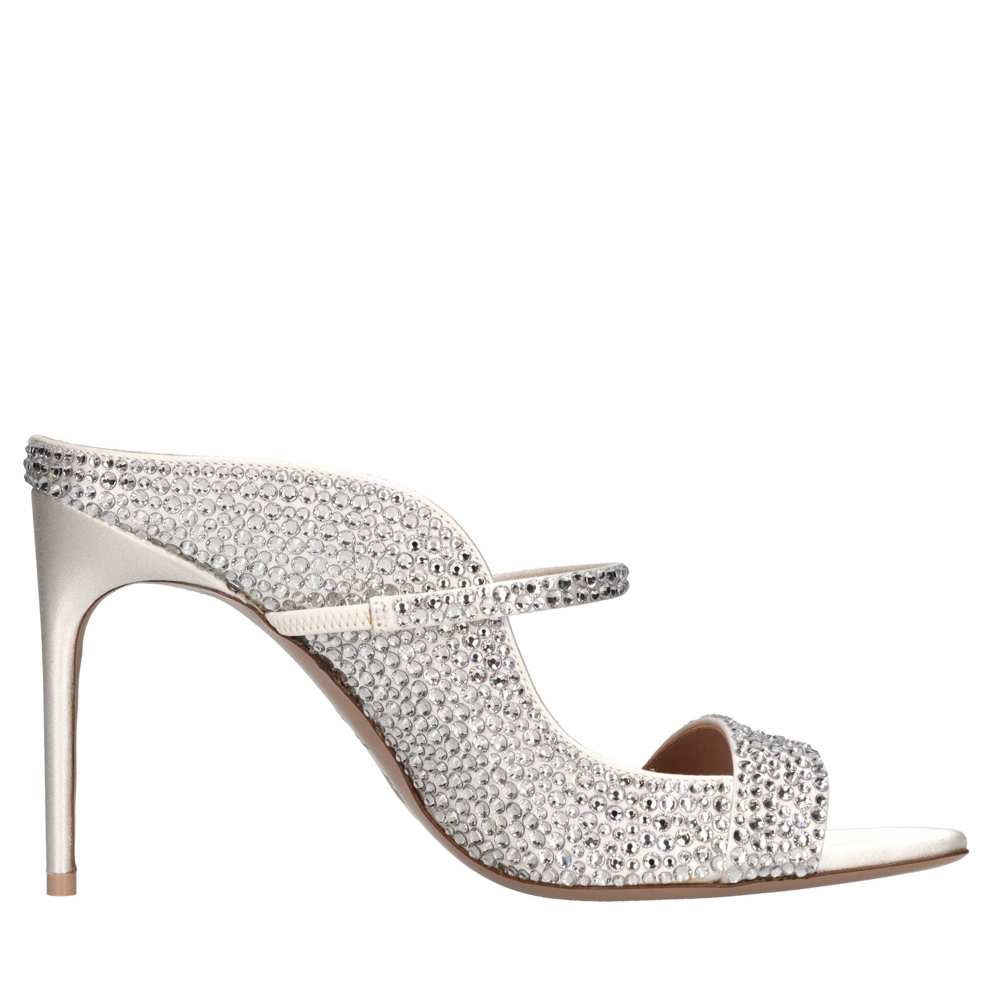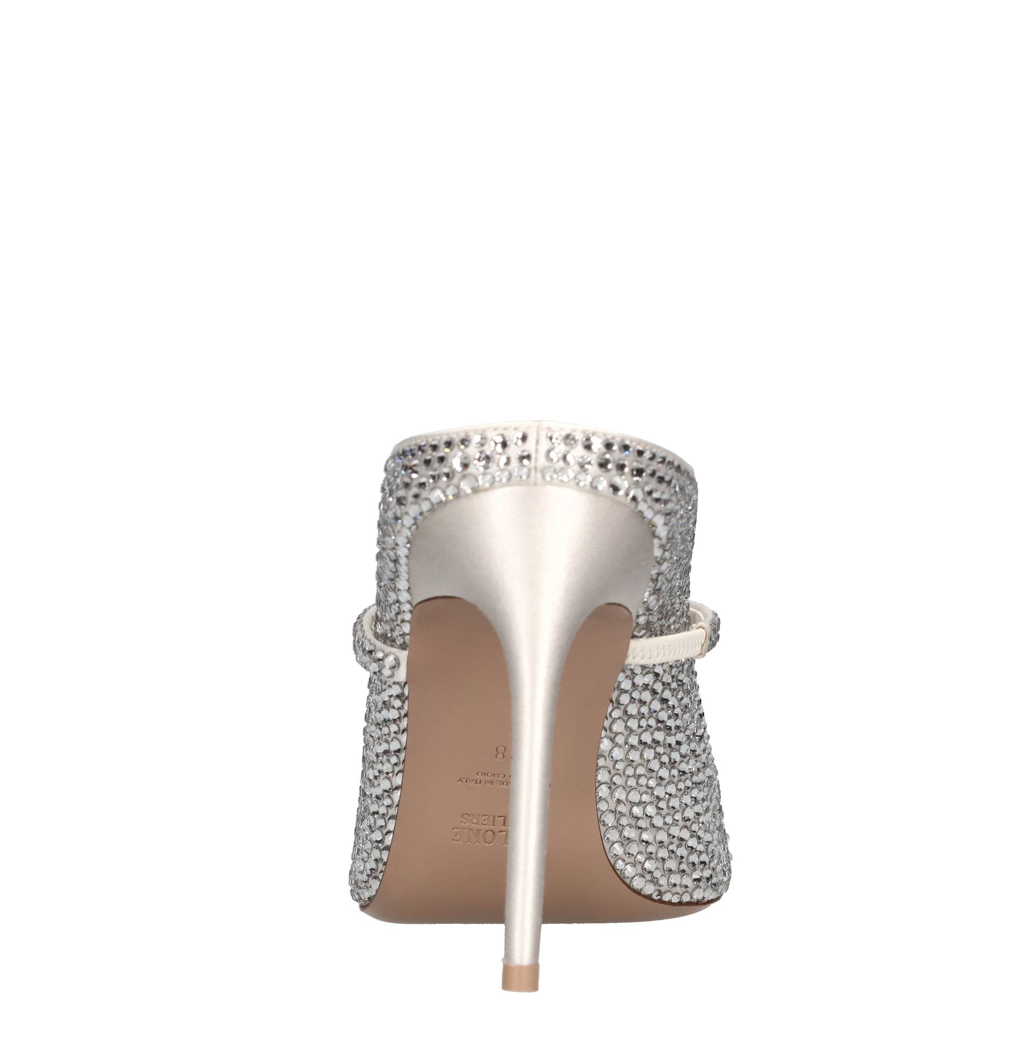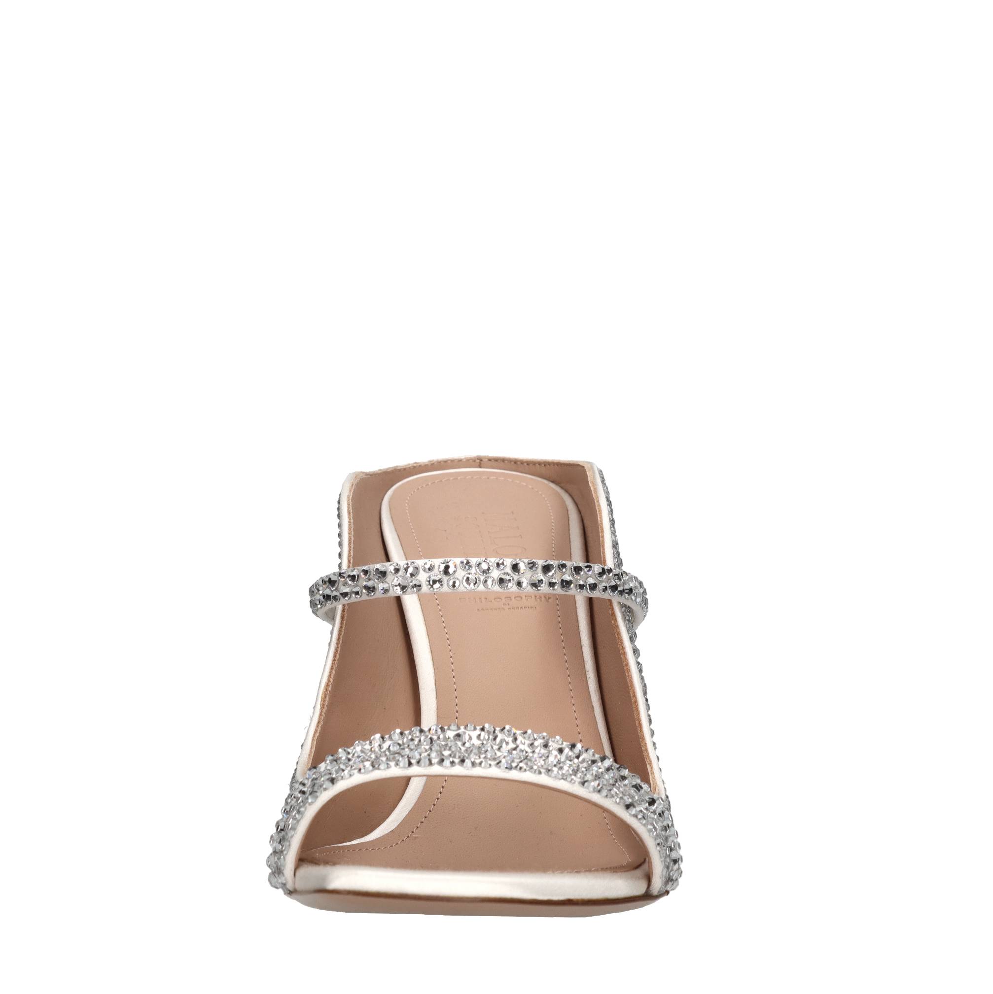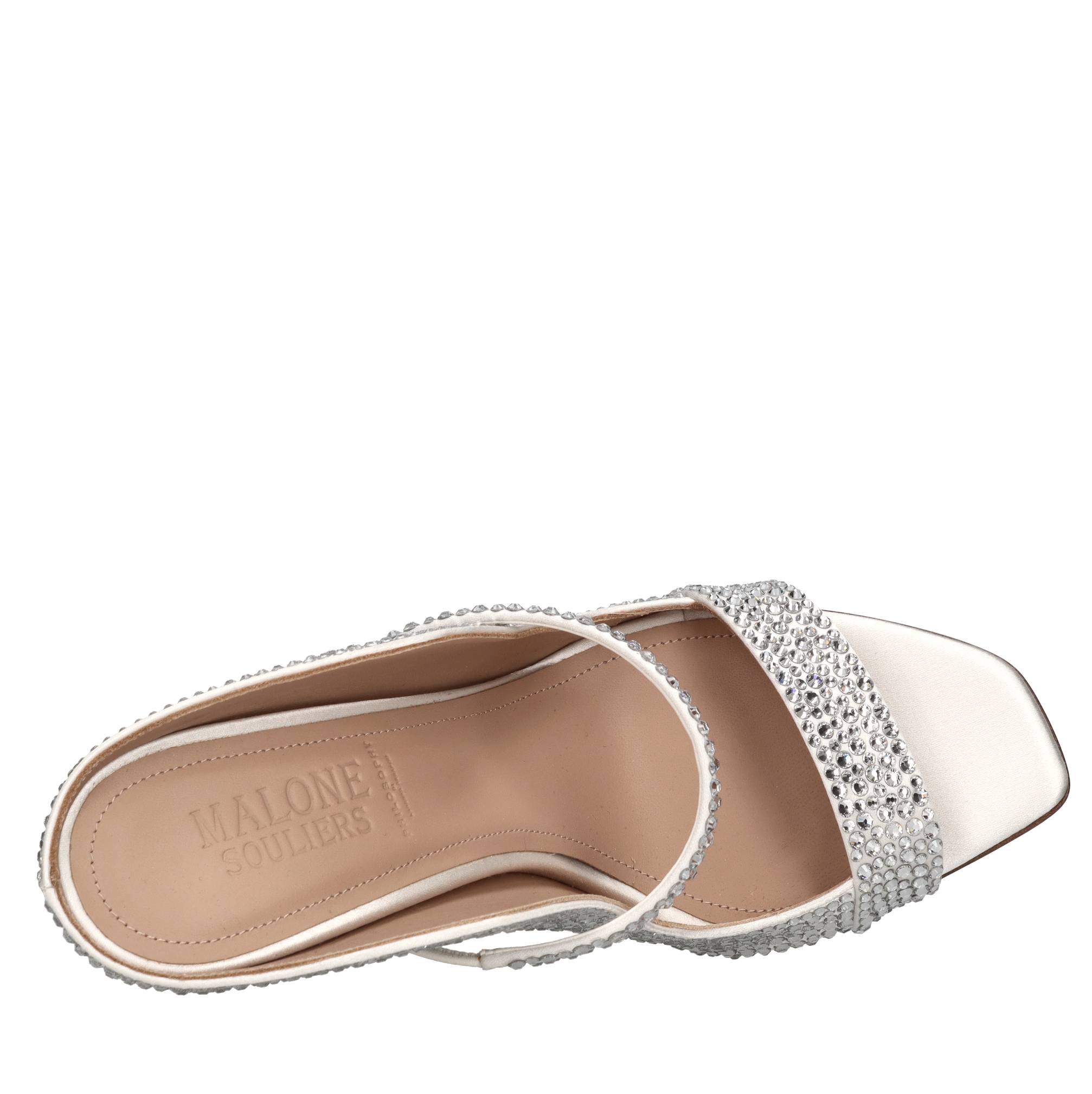 Mules model Carlotta in satijn en strass. Lederen bovenkant. Lederen buitenzool.