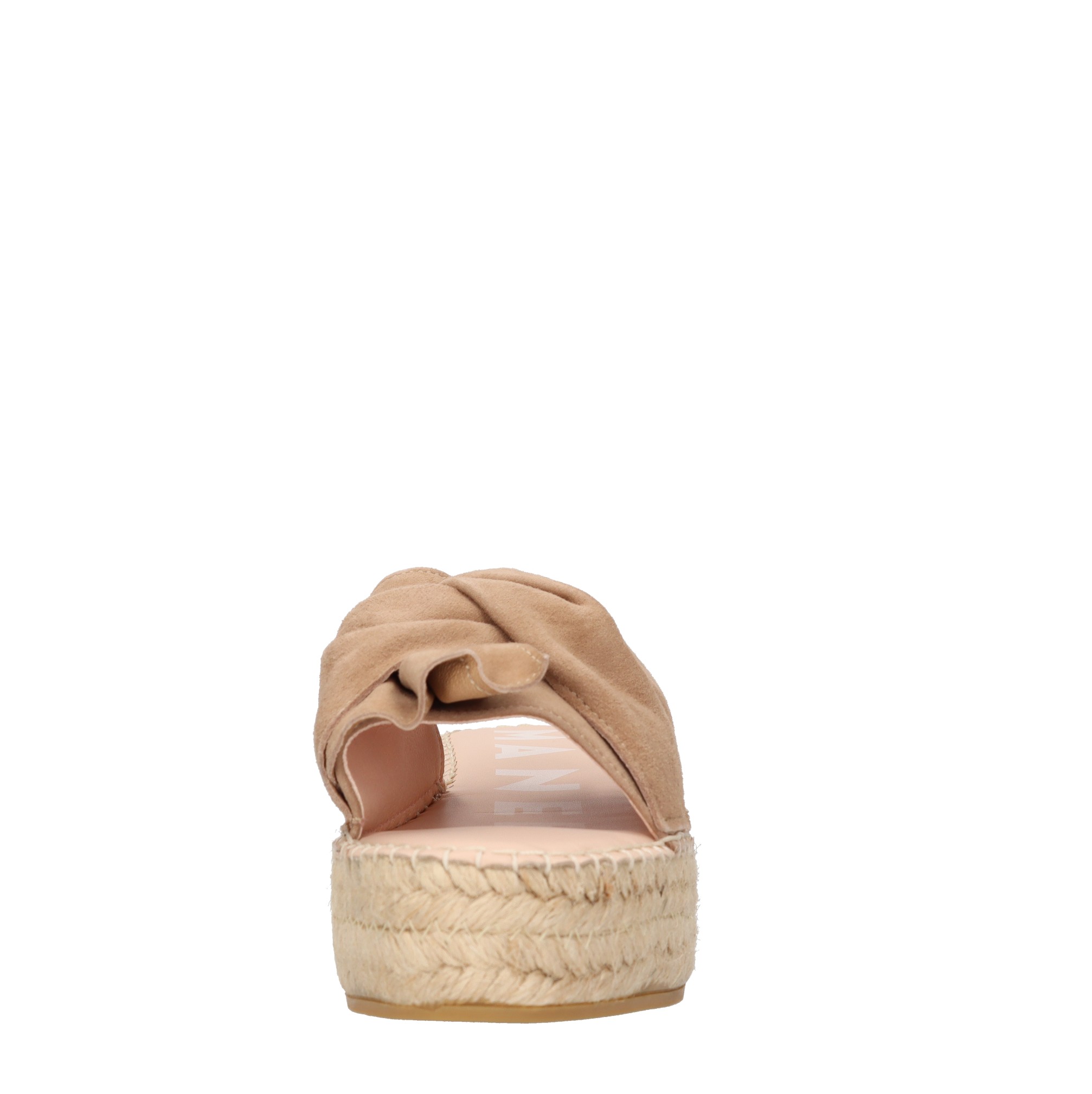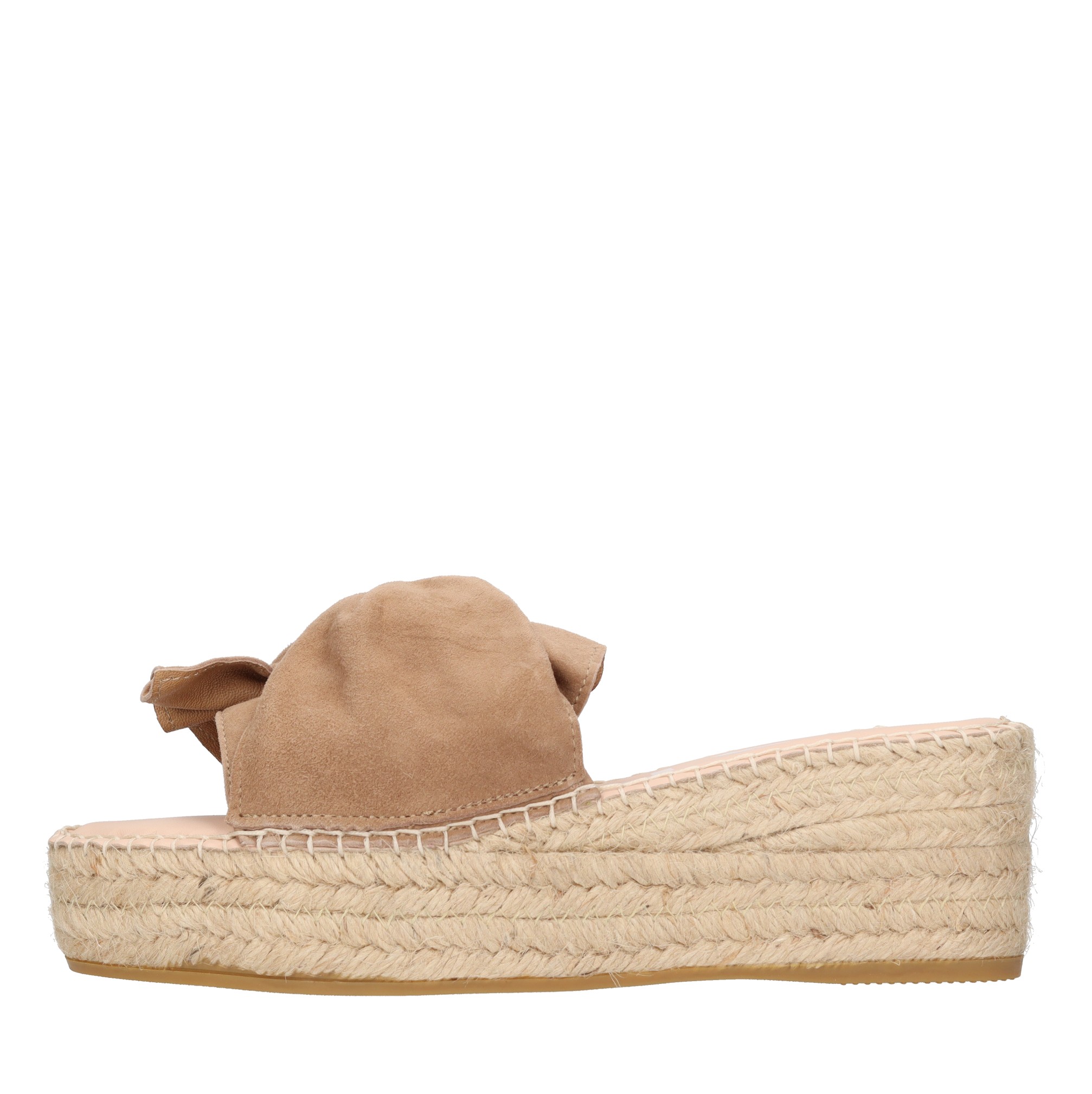 Suède sleehakken. Intern bovenwerk van stof en leer. Buitenzool van synthetisch materiaal.