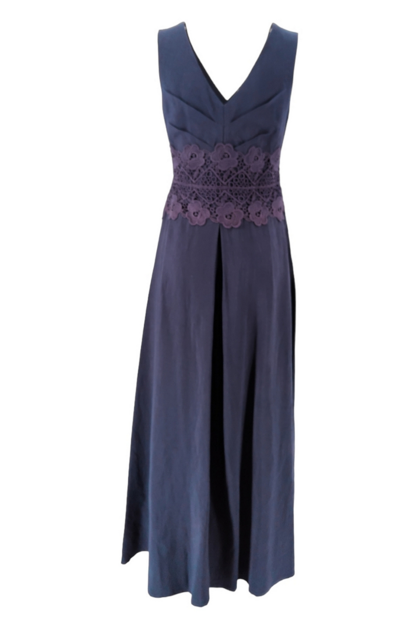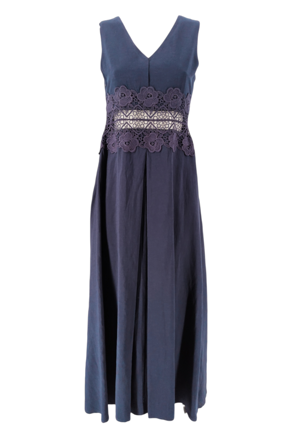 Lange jurk Taille details met kant katoen Piegone aan de voorzijde Side rits Samenstelling: 64% viscose, 36% linnen