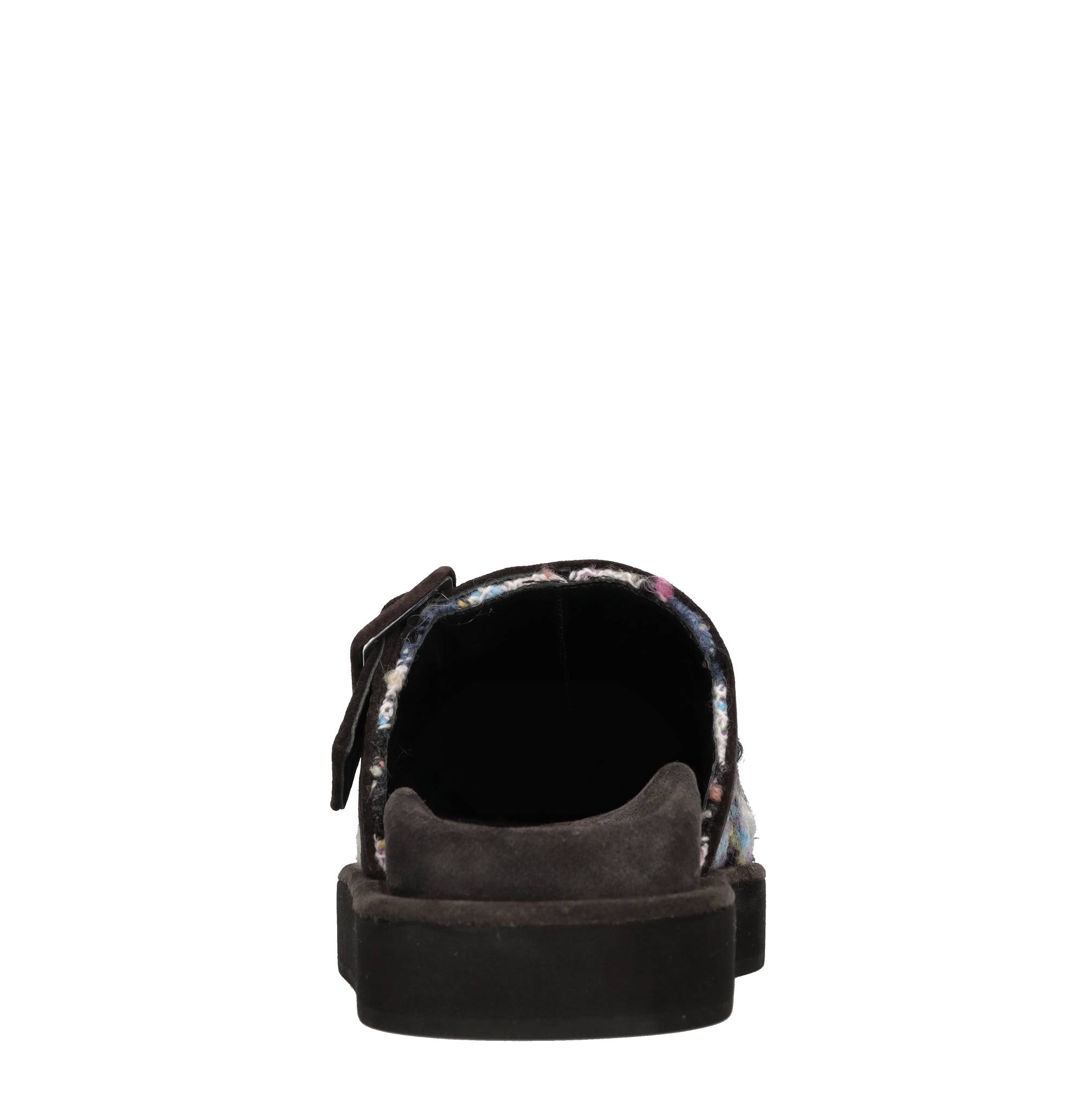 Sabot in suède en stof. Lederen bovenkant. Rubberen buitenzool.