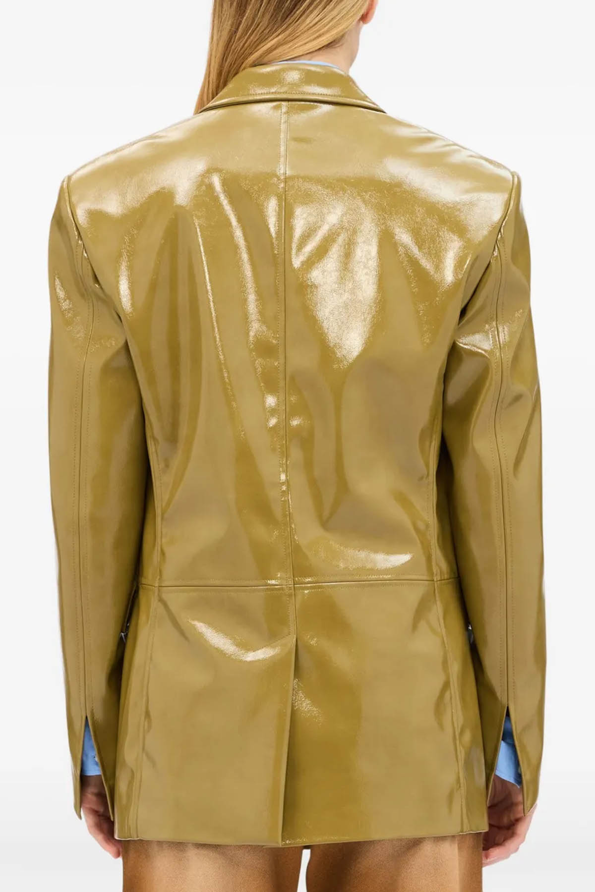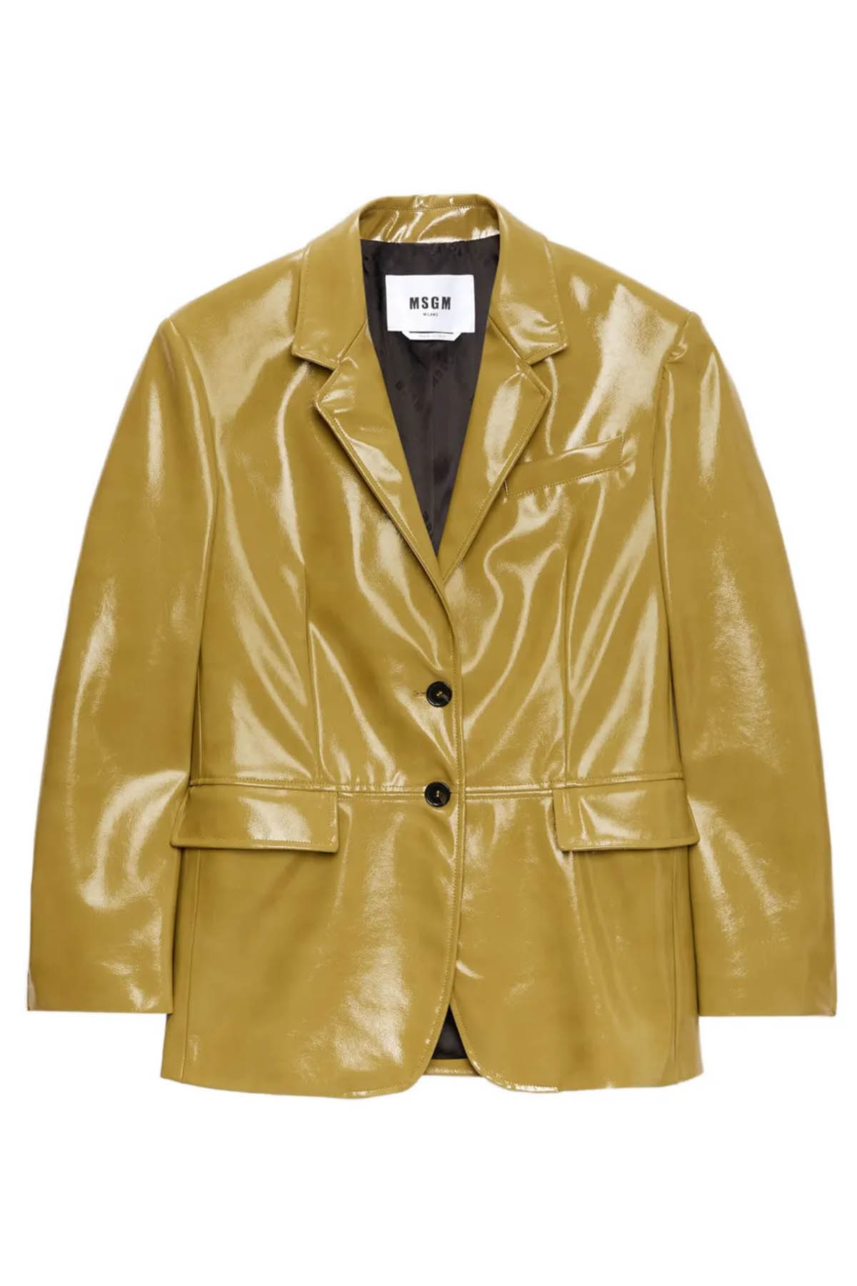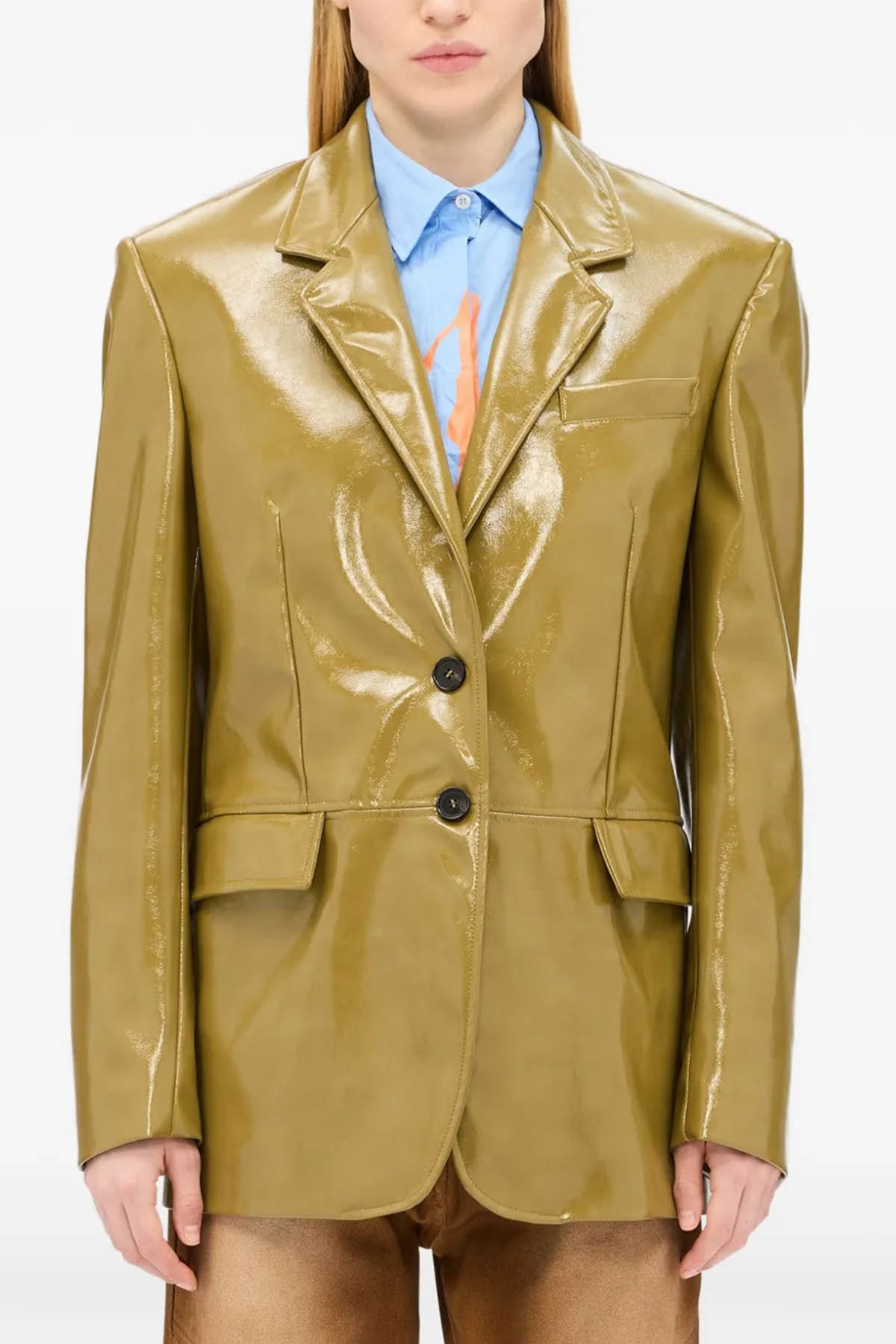 Enkelborst vinyl model met drie-knops sluiting, zakken met flap op de voorkant en schroefdraad zak op de borst, gestructureerde schouders, lange mouwen met spleet op de bodem. Samenstelling 100% pl