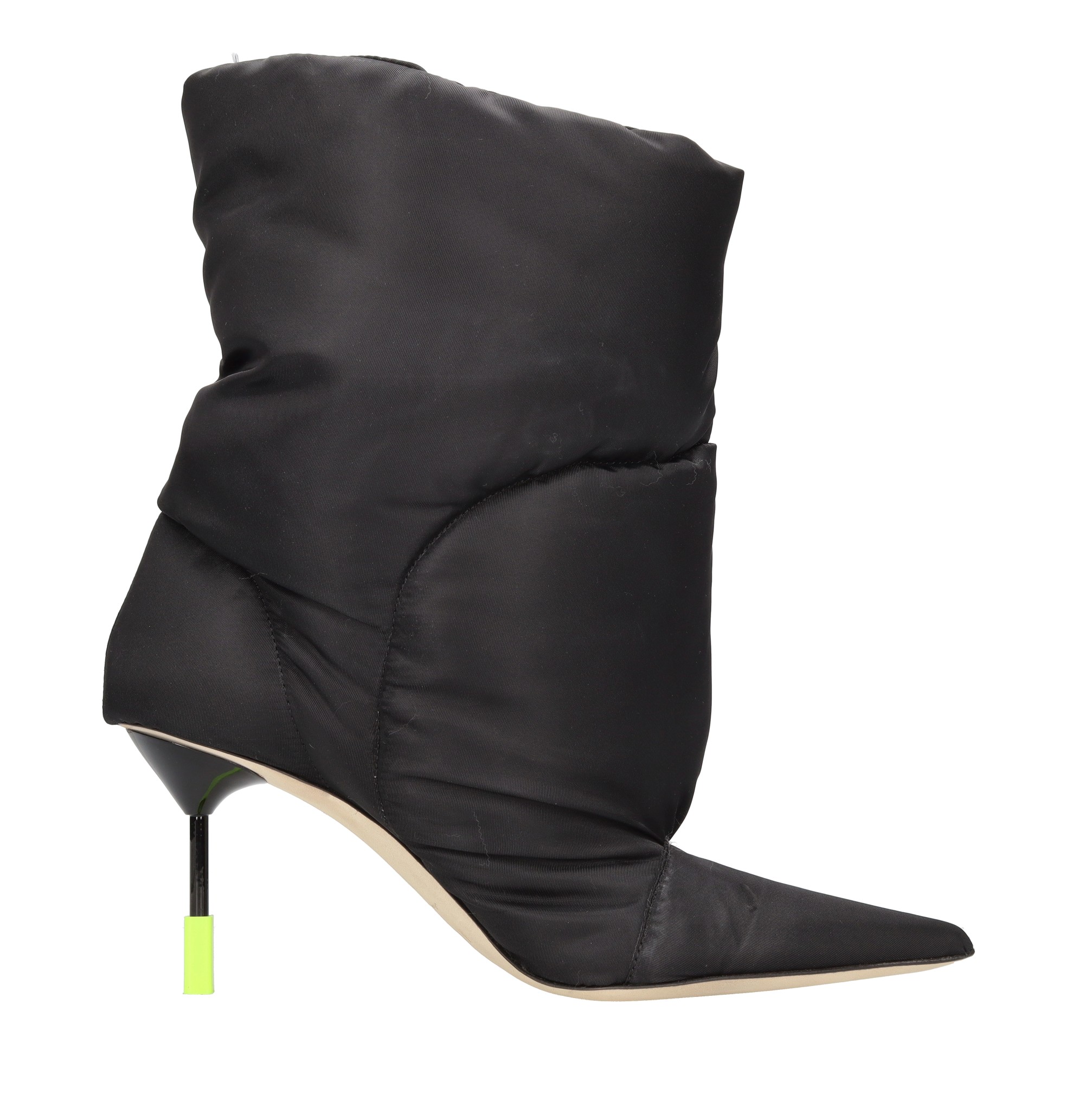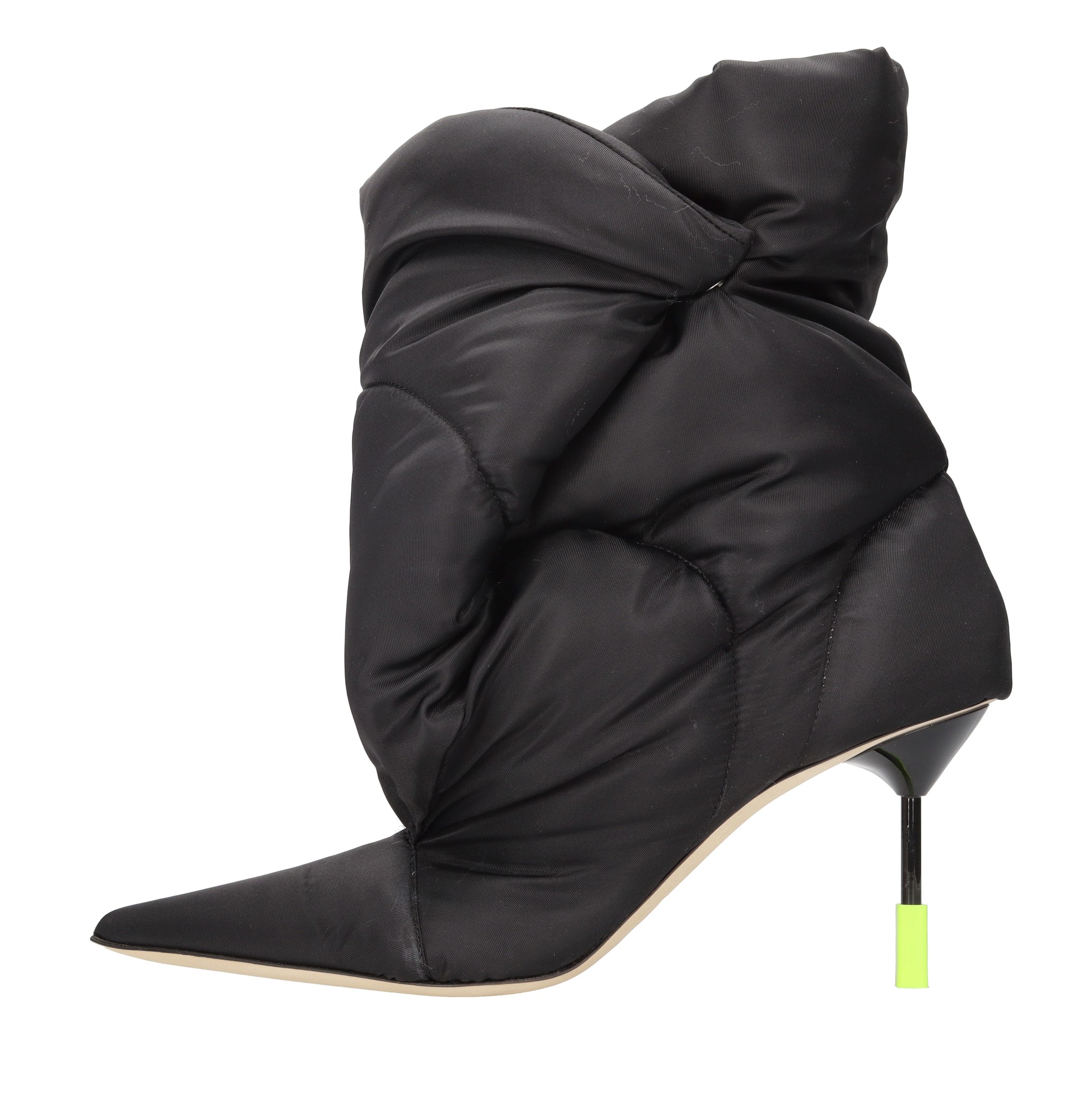 Enkellaarzen van gewatteerde stof. Intern leren bovenwerk. Leren buitenzool. Nummer 38 heeft onvolkomenheden veroorzaakt door een parade-terugkeer. Vraag om informatie.